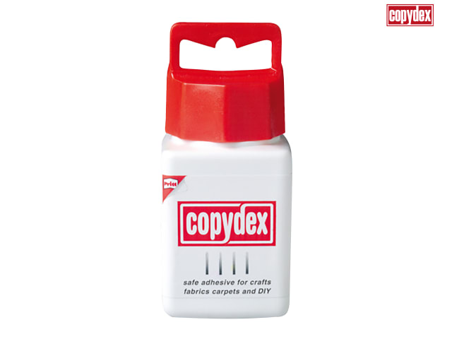 Copydex Adhesive is a strong, versatile, natural rubber latex-based adhesive for hobbies, craftwork and DIY repairs. Solvent and acid-free. Perfect for paper, card, wood, plastics, metal, cork, fabric, carpets, leather, canvas and many other materials. Ideal for repairing clothing and upholstery, sticking down carpets, making mobiles and collages, etc.