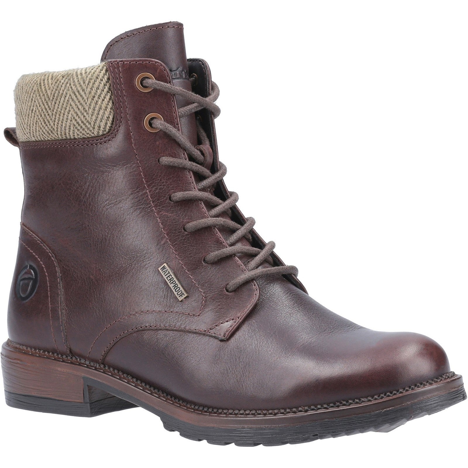 A ladies lace up country boot with classic leathers and padded collar with contrasting tweed material, the memory foam footbed adds superior comfort.Minety is a stylish performer in wet weather with its internal waterproof membrane and rear pull loop