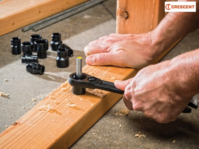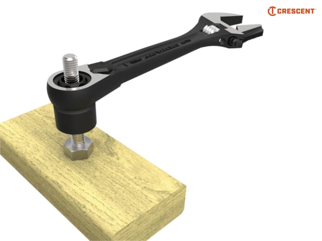 The traditional 200mm (8in) adjustable wrench has laser etched SAE/MM scales and a wide jaw opening. With a Pass-Thru™ reversible ratcheting system that works over long threaded rod, where normal ratchets and sockets won’t fit.