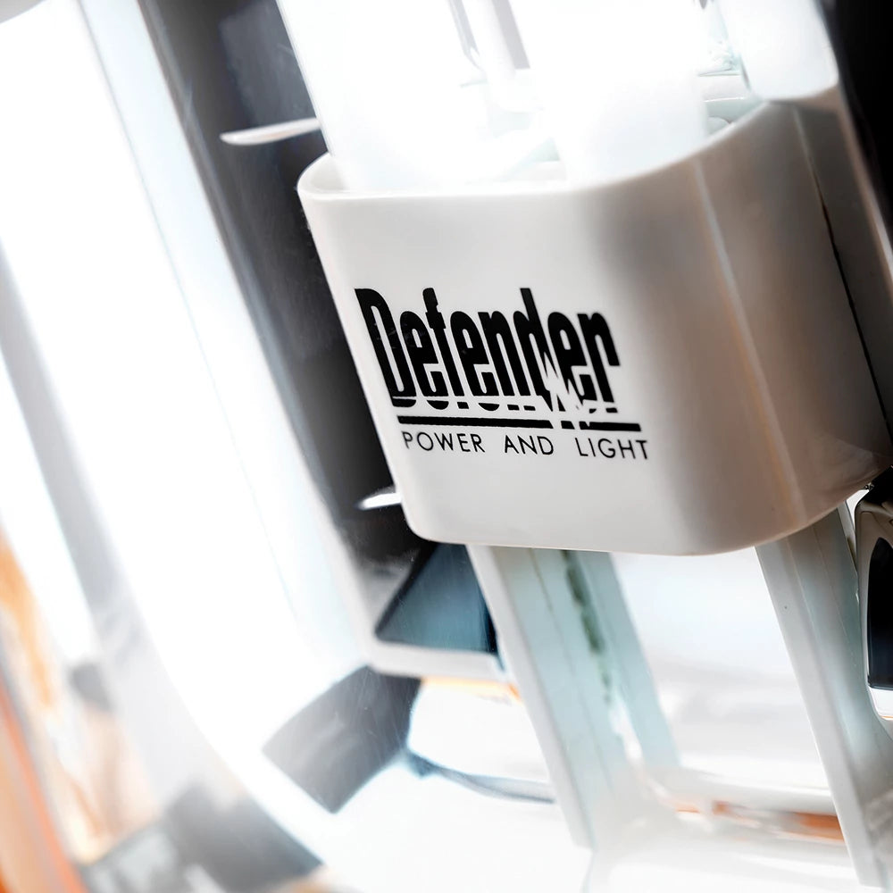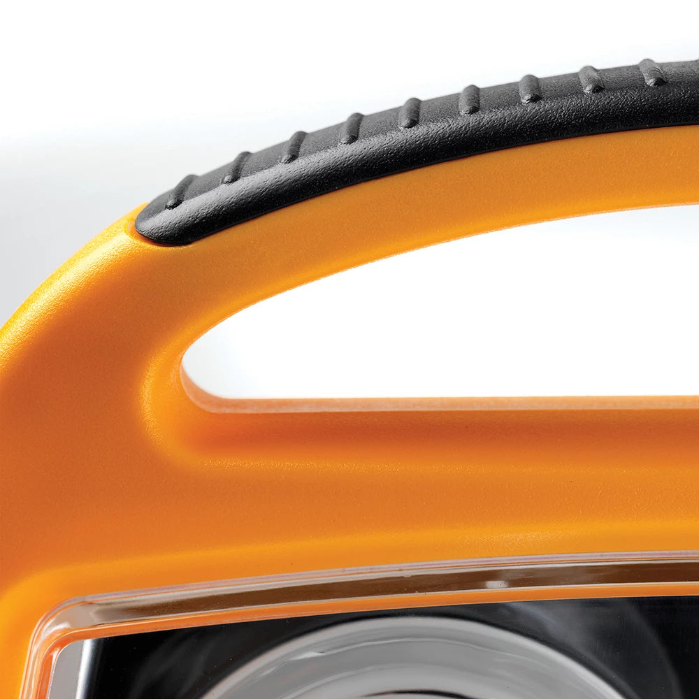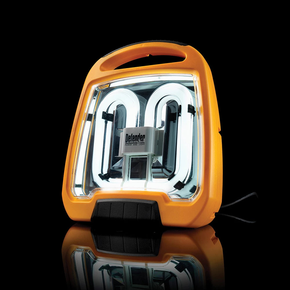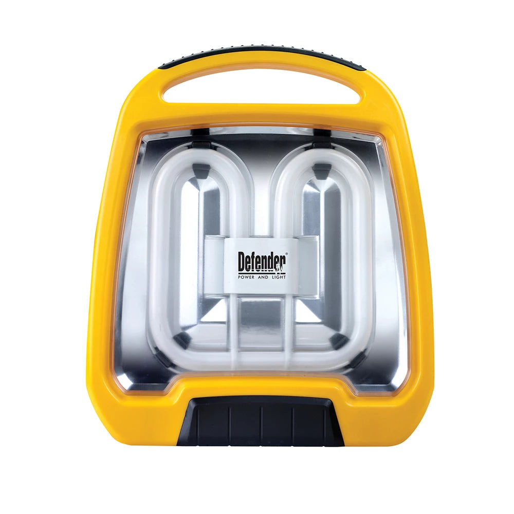 Impact-resistant watertight rubber casing and ABS body. Ribbed easy-grip handle. Tough polycarbonate lens with high intensity reflector. 38W power output. 2D low energy lamp.