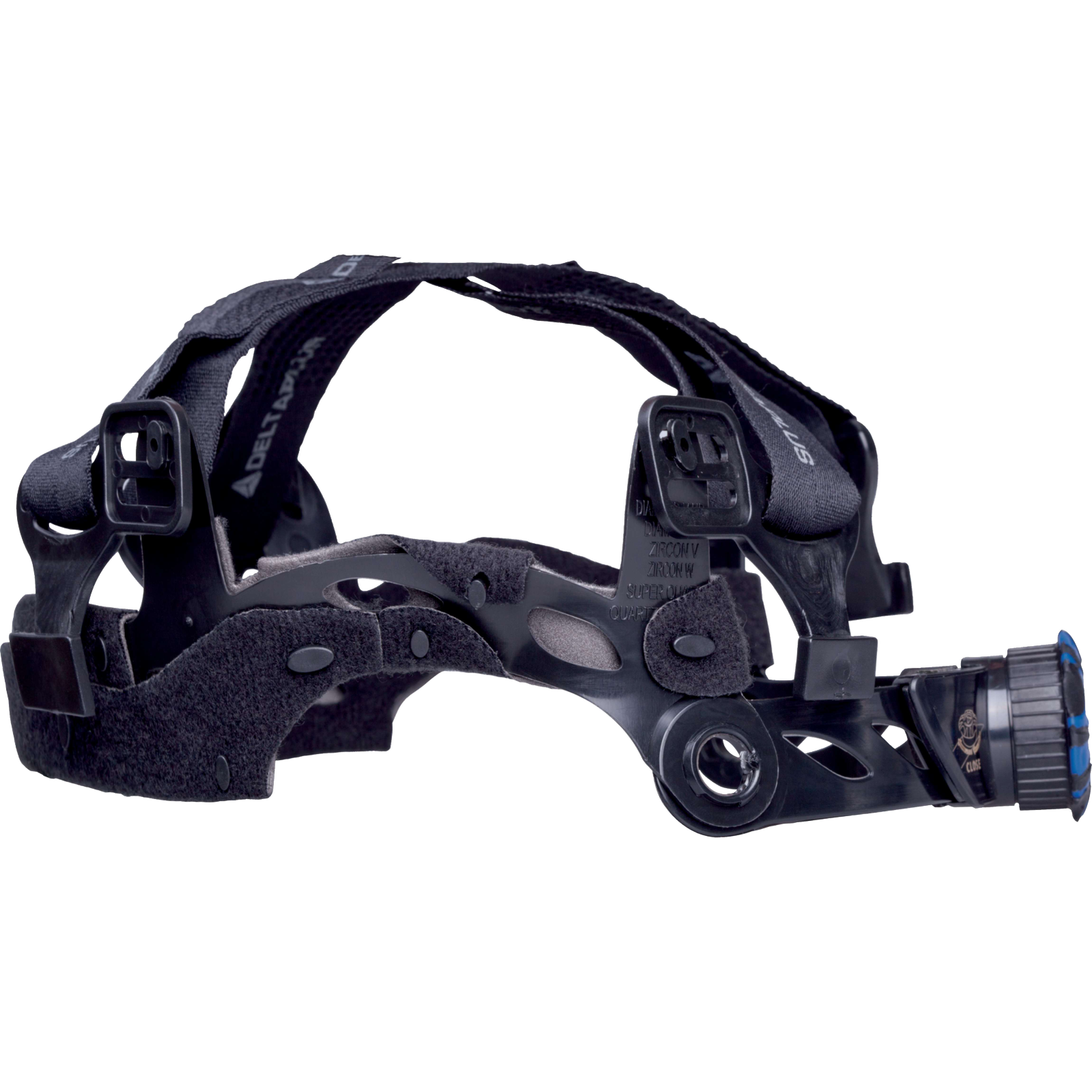 - Adjustable headband can be positioned high or low for a secure fit that keeps helmet in place during movement