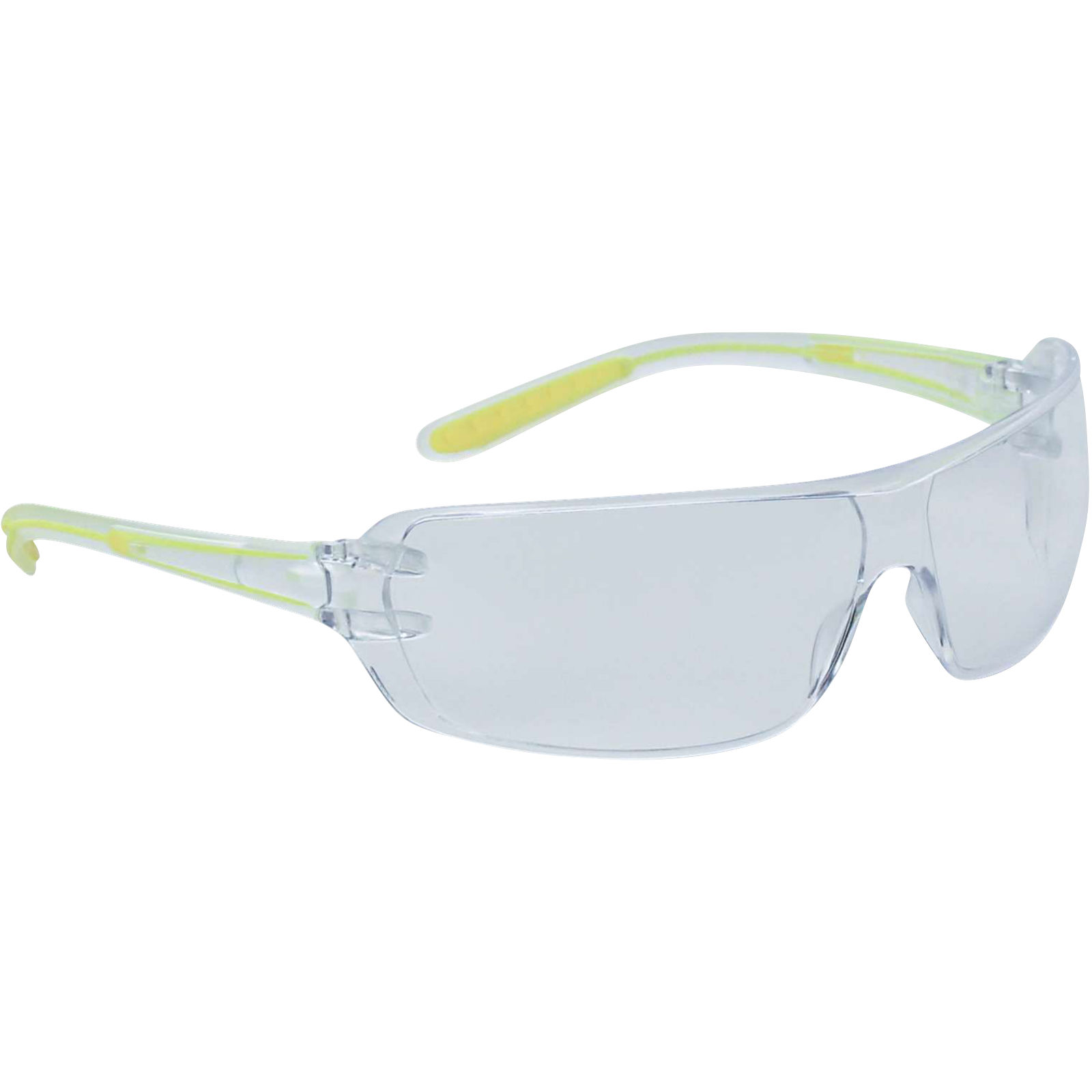 The HELIUM 2 Clear Safety Glasses deliver superior protection with an ultra-lightweight (17g) design, making them ideal for extended wear in indoor environments. The curved 9.5 monoblock polycarbonate lens provides a wide panoramic view and excellent side protection, ensuring optimal visibility and safety.