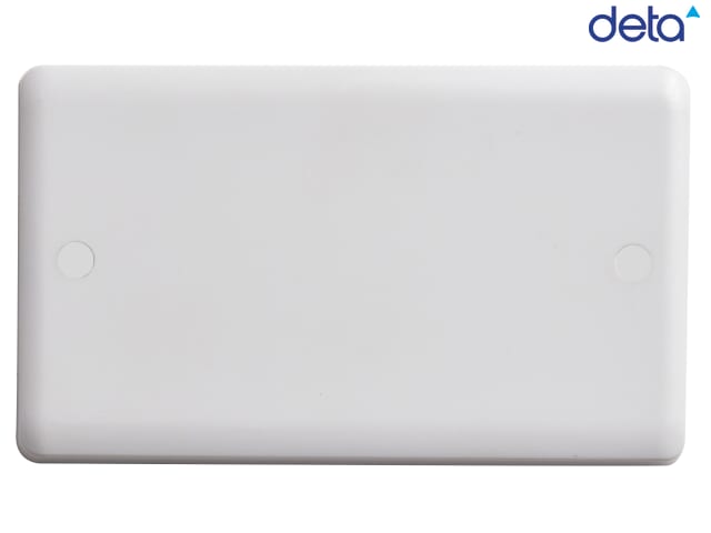 The Deta Vimark Blanking Plate is made from durable, moulded plastic and has a smooth, curved profile. It is used for blanking off unused sockets etc.