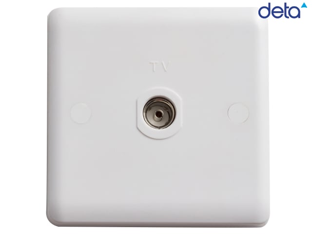The Deta Vimark Single Isolated Co-Axial Outlet is made from durable, moulded plastic and has a smooth, curved profile. Ideal for use with TV or FM/DAB aerial feeds.