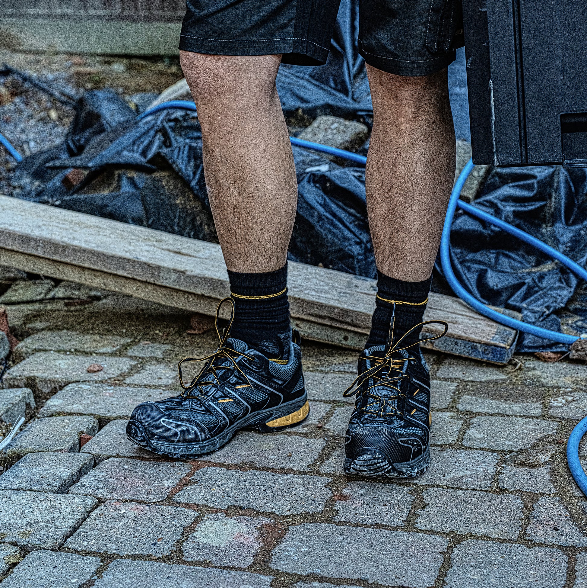 Lightweight synthetic upper. Padded tongue and collar for added comfort. Steel toe cap protection only. Comfort insole. Anti-scuff toe-guard. Phylon/rubber outsole. A stylish lightweight safety trainer from DeWalt.