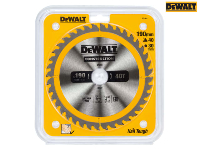 DEWALT Portable Construction Circular Saw Blade 190 x 30mm x 40T