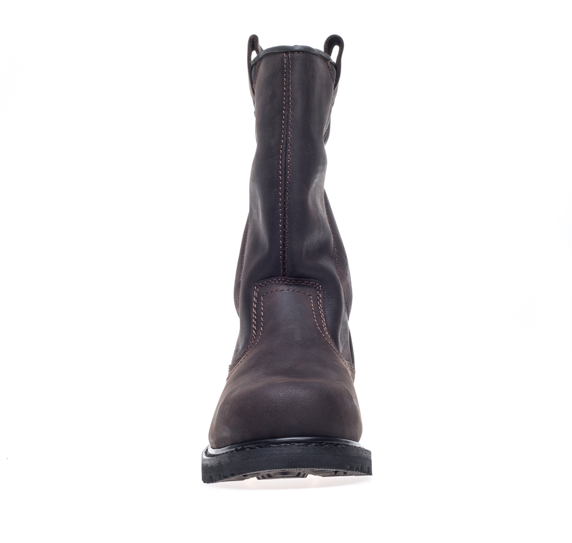 Brown full grain leather upper. Padded cuff for added comfort. Steel toe cap and steel midsole protection. Comfort insole. Durable goodyear welted rubber outsole. Padded ankle and TPU heel support. A robust styled rigger boot from DeWalt.