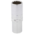 Expert Quality, 12 point deep sockets manufactured from chrome vanadium steel that's hardened and tempered with a polished finish. Each socket has a knurled ring for extra grip. Display packed.