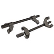 Hardened and tempered coil spring compressors. The 'Wrap-Over' claw design delivers an increased safety jaw capacity of 95-235mm, Hex size 21mm with a Hex drive of 1/2" and an M16 threaded bar that's applied with a chemically blacked finish.