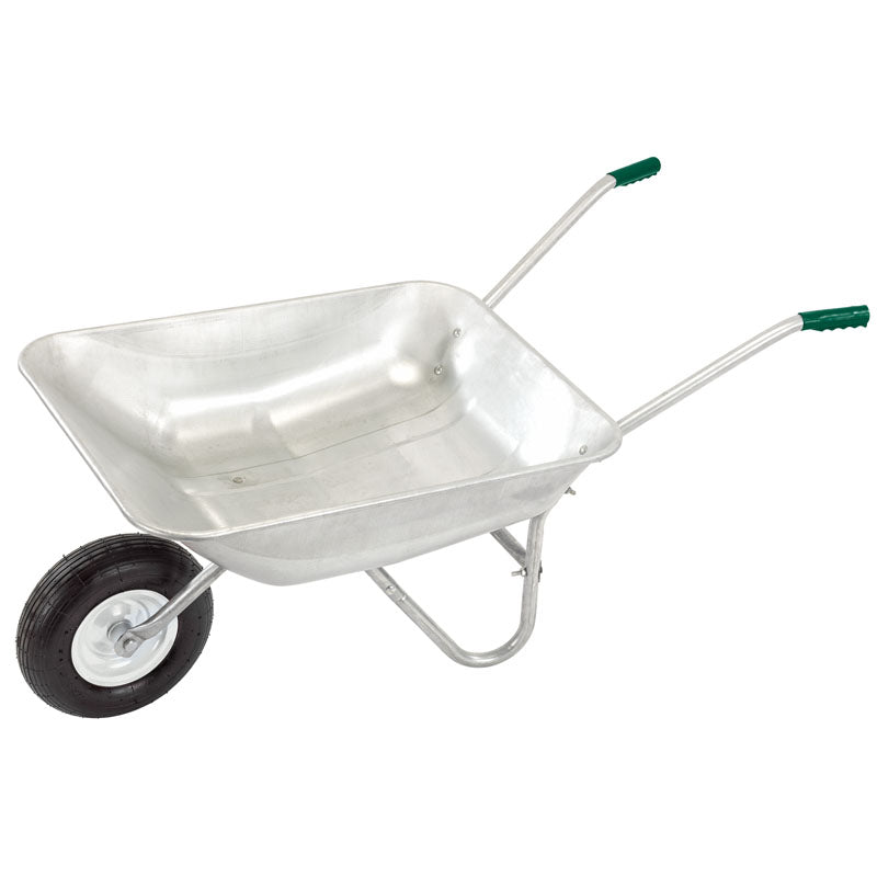 Galvanised wheelbarrow, perfect for general use. The 65-litre, 0.7mm galvanised steel tray is fitted to a rigid tubular frame and attached with a pneumatic tyre for a smoother ride. Supplied flat packed with easy to read assembly instruction manual.
