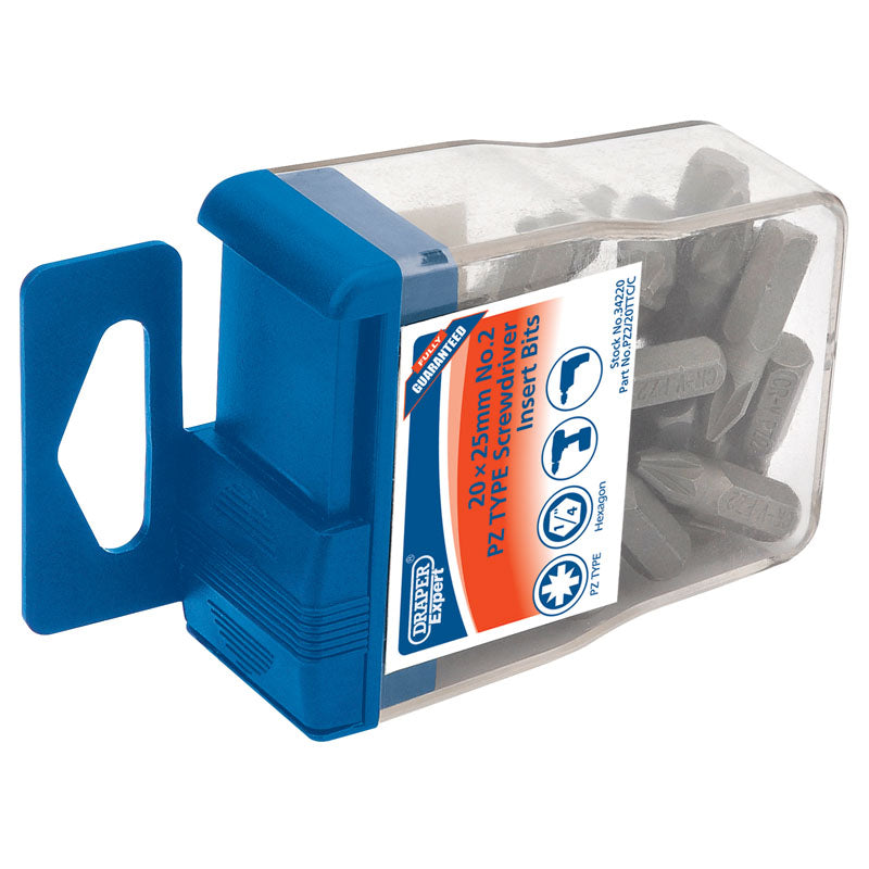 Draper No.2 PZ TYPE 1/4" Insert Bits in Plastic Storage Case (20 PIECE)