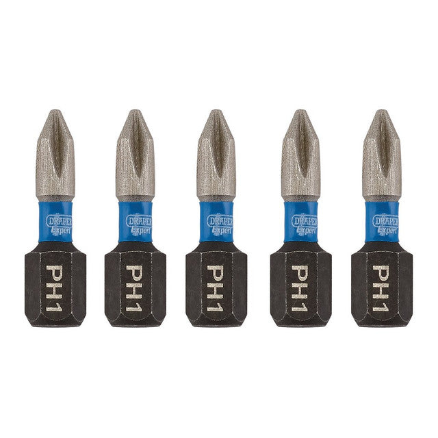 Draper Tools Draper Expert Cross Slot/Ph Type Impact Screwdriver Bits, No.1 x 25mm, 1/4" Hex (Pack Of 5)