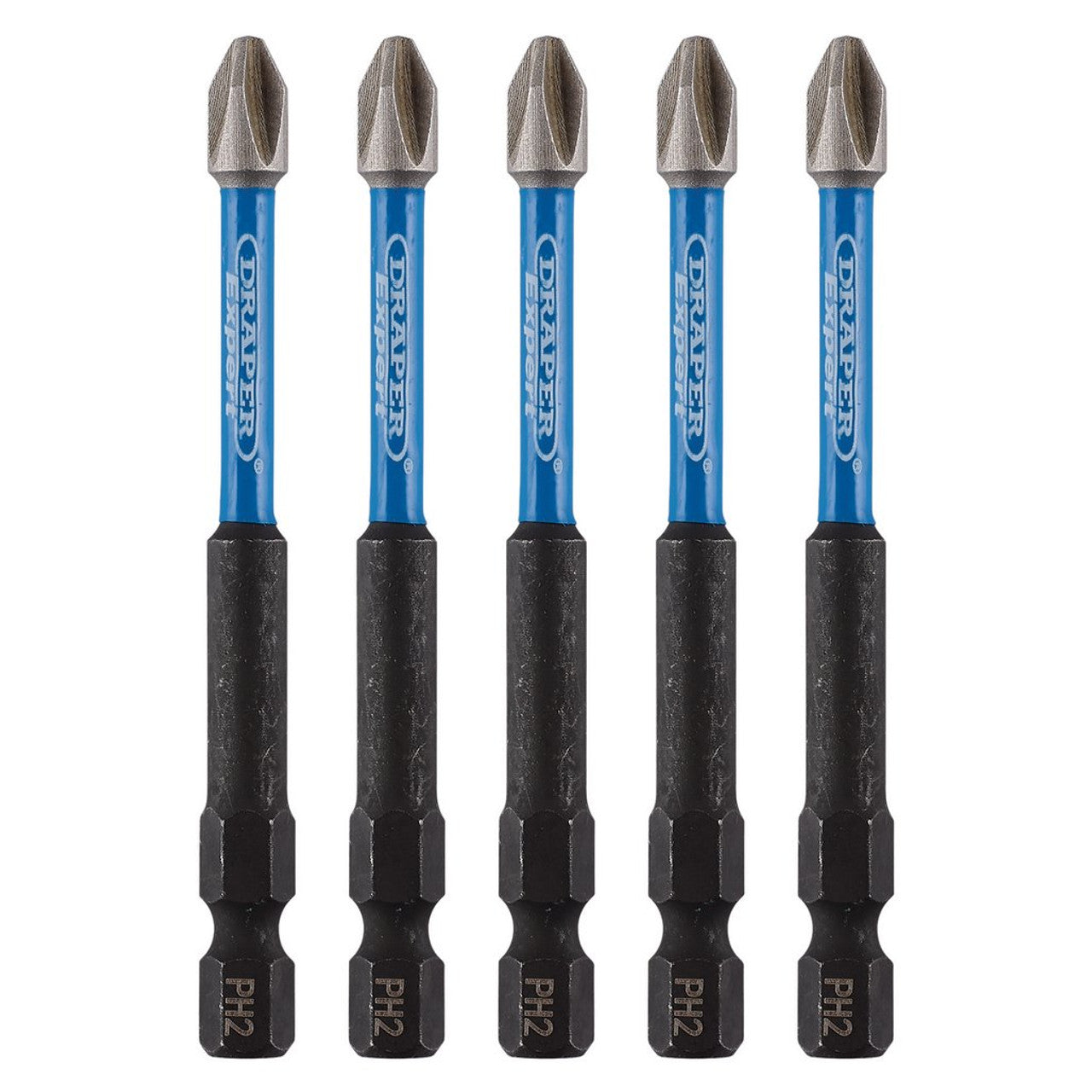 Draper Tools Draper Expert Cross Slot/Ph Type Impact Screwdriver Bits, No.2 x 75mm, 1/4" Hex (Pack Of 5)