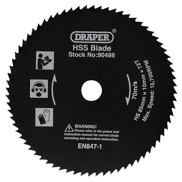 Hardened and tempered High Speed Steel (HSS) saw blade. The blade is equipped with 72 teeth for smooth clean cuts on sheet metal, non-ferrous metals, hardwood, softwood, MDF, chipboard, plywood and plastics.