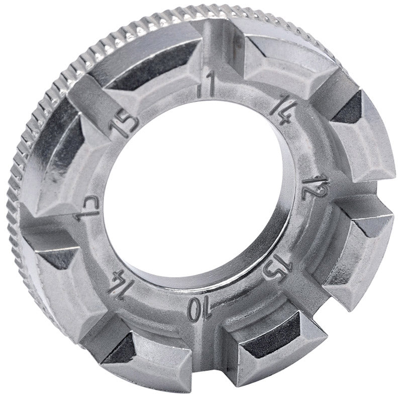 Chrome molybdenum with wide driving faces minimise damage to spoke nipples. Display packed.