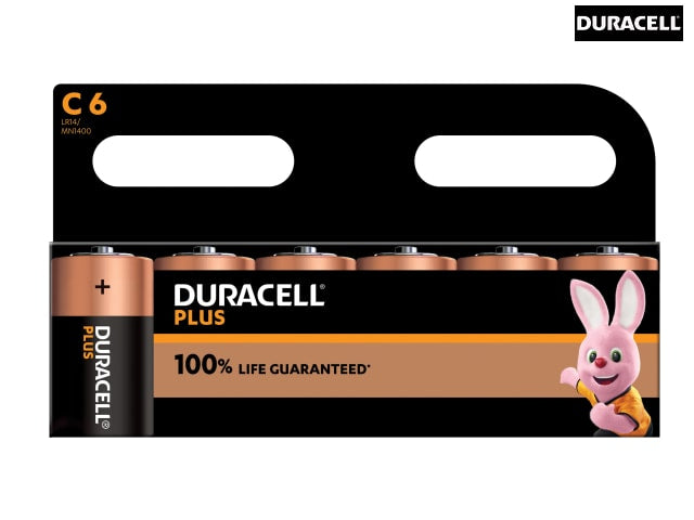 Pack of 6 Duracell C Cell Plus Power +100% Batteries.