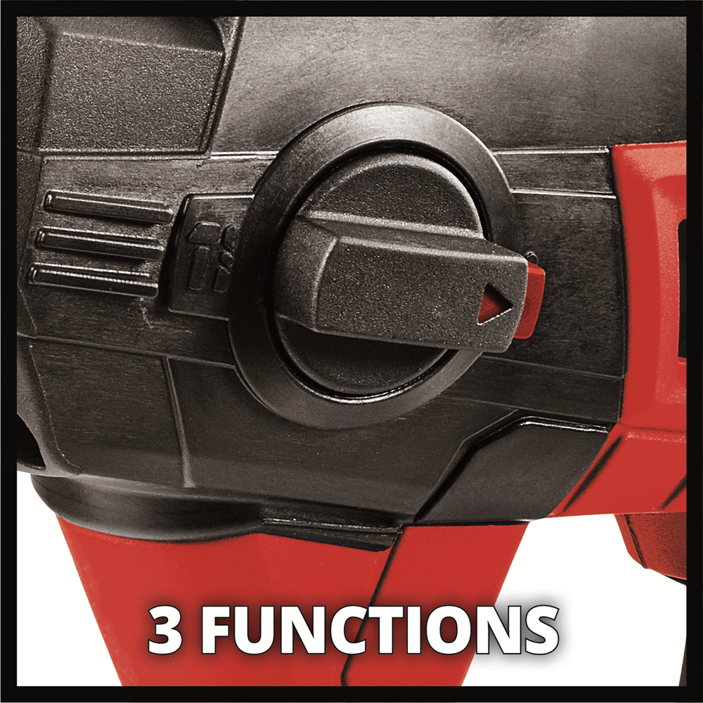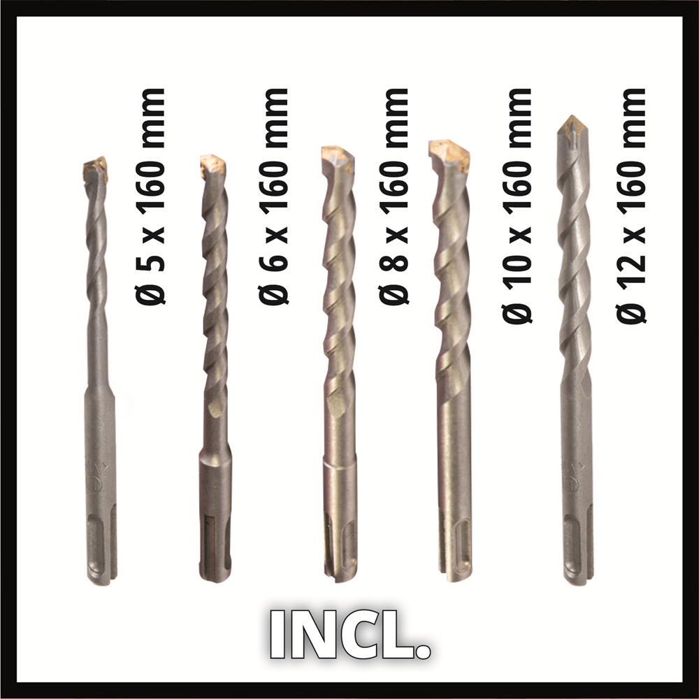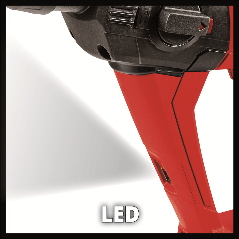 The Einhell TE-HD 18 Li Kit (1x2.5 Ah) Cordless Rotary Hammer is a robust and versatile tool used for screwing and drilling jobs and has an additional powerful hammer function. Thanks to its pneumatic hammer mechanism good propulsion in masonry and concrete is enabled. Due to its ergonomic handle with soft grip the rotary hammer can be handled comfortably and safely. The practical quick stop function protects against unwanted coast-down of drills and the bright LED light provides optimal illumination of the working area. Drills for concrete can be changed at the automatic SDS-Plus chuck quickly and without tools. Due to lithium-ion technology, these batteries cannot get discharged by themselves anymore and the devices remain small, light and handy. The rechargeable battery provides an integrated gauge for quick control of the current state of charge. Supplied in an E-Box Basic with 1x 2.5Ah Power X-Change battery, a Fastcharger and 5 drills for immediate project start.