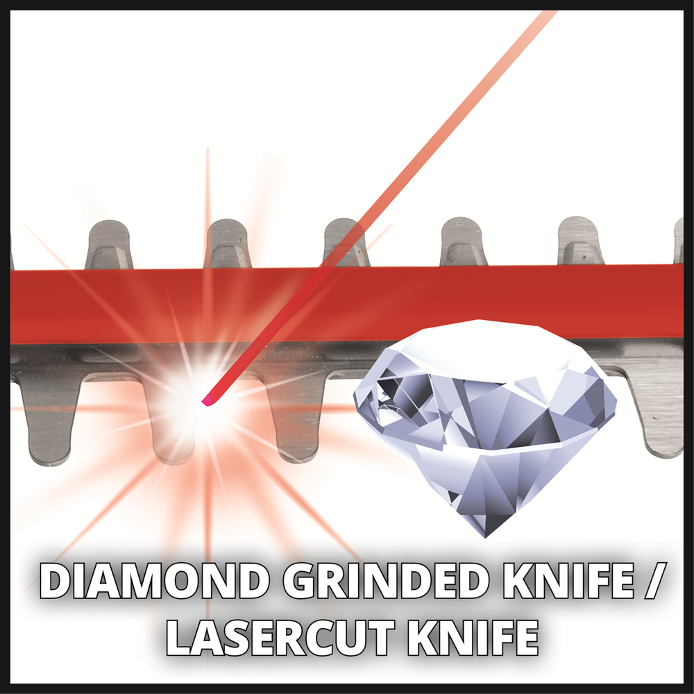 The Einhell cordless hedge trimmer GE-CH 36/61 Li-Solo brings the best out of your garden at home, at any angle. Thanks to Power X-Change technology, freedom is cordless; the flexible hedge trimmer is operated with high-quality lithium-ion batteries, which can be used in over 200 devices in the Einhell system family. A plus for the environment: Exhaust gases are already a thing of the past  but noise and electrical cables are now no longer a source of danger in use. 2x18 V batteries are required for operation. The blades made of laser-cut and diamond-ground steel offer quality and durability. Likewise, the metal gearbox is designed for a long service life. The ergonomic, narrow front handle with micro switch ensures comfortable operation even for longer and more difficult use. The cordless hedge trimmer is equipped with a cuttings collector and an aluminium blade cover, as well as impact protection with a bracket for wall mounting. The stable quiver enables safe transport and simple storage. Delivery does not include a battery or charger from the Power X-Change series, but these are available separately, for example as a practical starter kit.