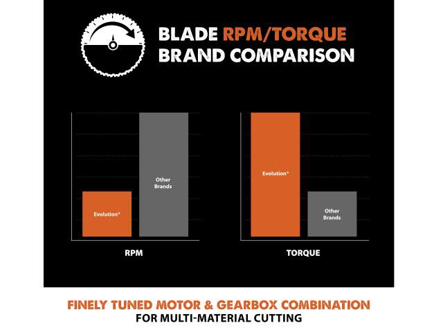 The Evolution Multi-Material Mitre Saw Blade is made from premium materials in Japan. Ideal for the construction professional and for daily use on a construction site. Designed to cut mild steel*, aluminium, plastics and wood, even wood containing embedded nails, with a single blade.