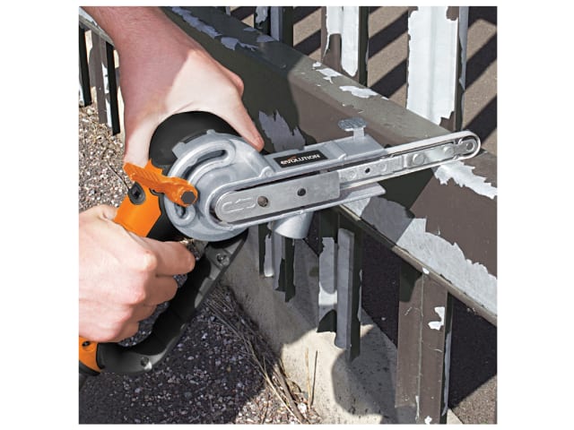 The Evolution Precision File Sander is a versatile, compact tool ideal for sanding, filing, as well as sharpening tools and blades. Perfect for use in tight gaps, such as cleaning out door locks, plus handy at removing rust and excess weld. Features an adjustable sanding arm, allowing the operator to keep their hand/wrist in a comfortable position and alter the angle of the sanding arm to suit the job. Variable speed control provides optimum control and finishing on a number of surfaces and materials.