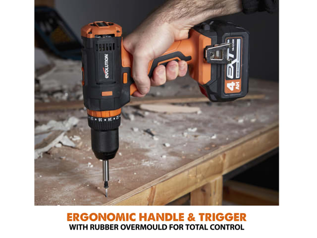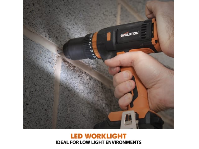 The Evolution R13CMB-Li EXT Combi Drill features dual speed control for high speed drilling or high torque screwing. It features 20 adjustable torque settings as well as hammer, drill and drive functions. Fitted with a 13mm heavy-duty, keyless metal chuck for long lasting performance. There is also a bright LED work light that illuminates the work area for easy drilling in low light conditions.