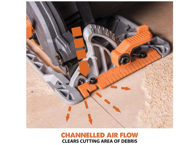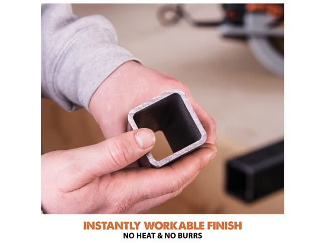 When cutting mild steel the saw produces a square, ready-to-weld cut with no heat, no burrs and virtually no sparks, far superior to abrasive cutting methods. The saw features an adjustable cutting depth and 0-60 ? bevel capabilities for versatile cutting in any material. It also features channelled air flow and a vacuum extraction port, that helps to keep the cutting line visible. The electric blade brake and blade guard, (that closes in 0.4 seconds) improves user safety and reduces exposure to a spinning saw blade.
