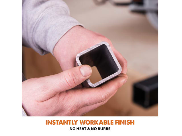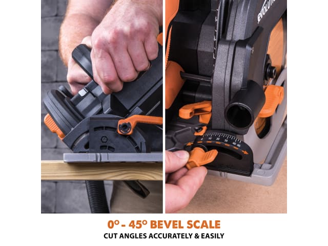 The Evolution R185CCSX Circular Track Saw is perfect for trade or DIY users thanks to its powerful motor and optimised gearbox. When combined with the Evolution R185TCT-16CS blade (supplied) it can cut a variety of materials such as mild steel, aluminium, wood (even with embedded nails), plastic, copper, PVC and more. When cutting mild steel the saw produces a square, ready-to-weld cut with no heat, no burrs and virtually no sparks, far superior to abrasive cutting methods.
