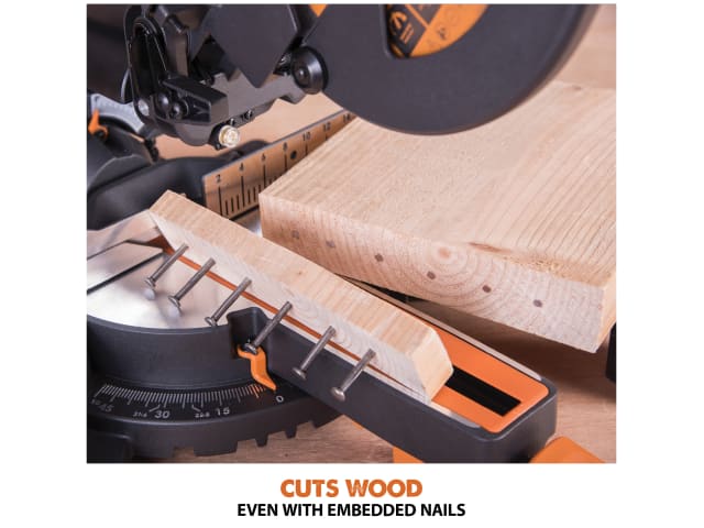 The Evolution R210SMS+ Pro Multi-Material Sliding Mitre Saw utilises patented Evolution RAGE® multi-material cutting technology. It is optimised to cut mild steel, non-ferrous metals, wood, even wood with embedded nails and plastic with a single blade. Laser guidance provides optimum accuracy and dual quick release clamps give the user additional safety and faster adjustments.