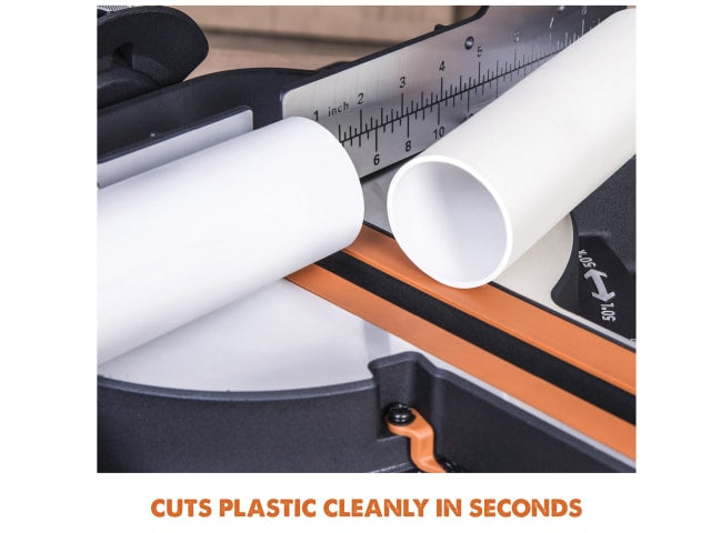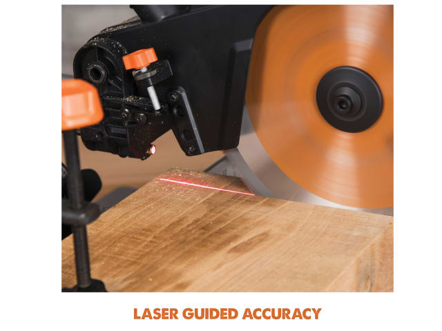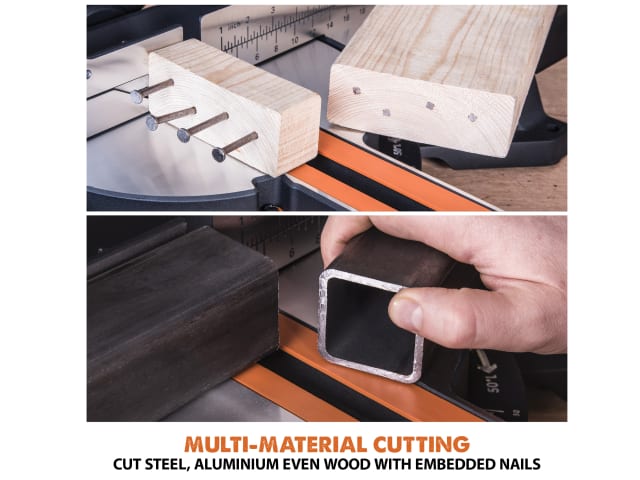 The Evolution R255SMS+ Pro Multi-Material Sliding Mitre Saw utilises patented Evolution RAGE® multi-material cutting technology. It is optimised to cut mild steel, non-ferrous metals, wood, even wood with embedded nails and plastic with a single blade. Laser guidance provides optimum accuracy and dual quick release clamps for additional safety and faster adjustments.