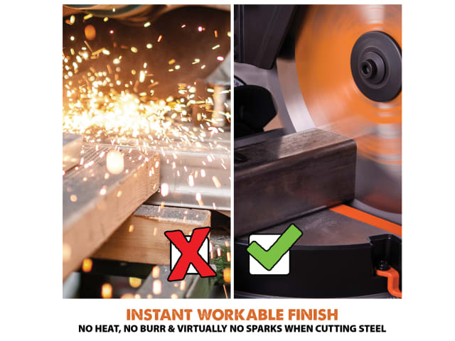 The R255SMS+ Sliding Mitre Saw is safer, faster and more economical than abrasive metal cutting saws. When cutting mild steel the saw produces no heat, no burrs and virtually no sparks. The sliding rail protector protects against damage and prevents dust ingress for increased work life and durability. It is lightweight and portable, integrated handles make it easy to carry and transport around the workplace.
