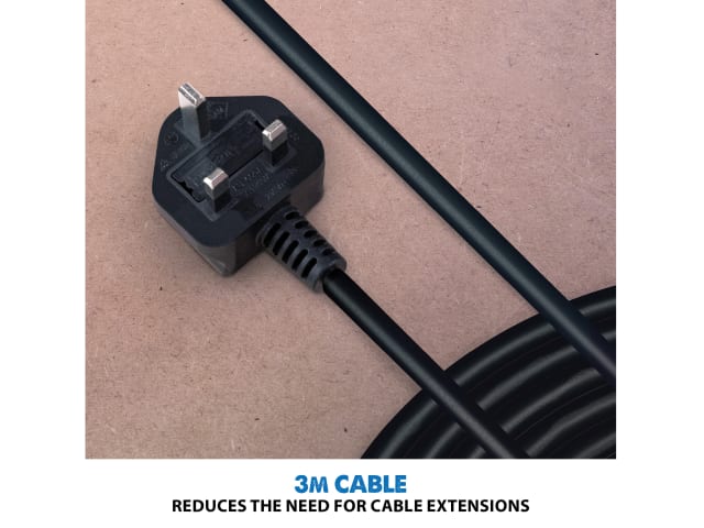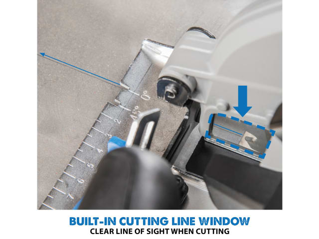A 0-45° bevel tilt enhances the versatility of the saw. With an easily adjustable depth of cut, plus a clear visibility panel to aid accurate cutting. Other features include a safety switch with overload protection and an auto-debris collection system, which collects chipping automatically.