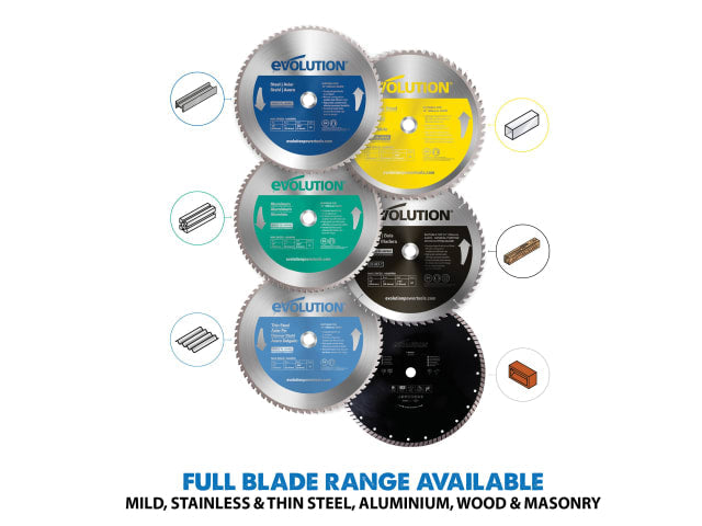 The Evolution S355CPS Industrial Chop Saw is ideal for cutting steel plate, square tube, angle iron, pipe and metal roofing. When cutting steel, it leaves an instantly workable finish, producing no heat, no burr and virtually no sparks unlike alternative methods.