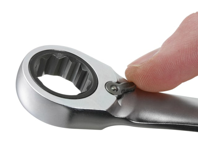 The Facom 467BJ Ratchet Combination Wrenches are suitable for all applications. The heads are angled at 15° and feature an anti-slip open end designed to reduce the risk of rounding fastener heads and an anti-slip ring head. The wrenches feature a compact ratcheting mechanism, which is reversible via a lever. They have a high-quality satin chrome finish and come complete with a hinged case for storage and ease of transporting.