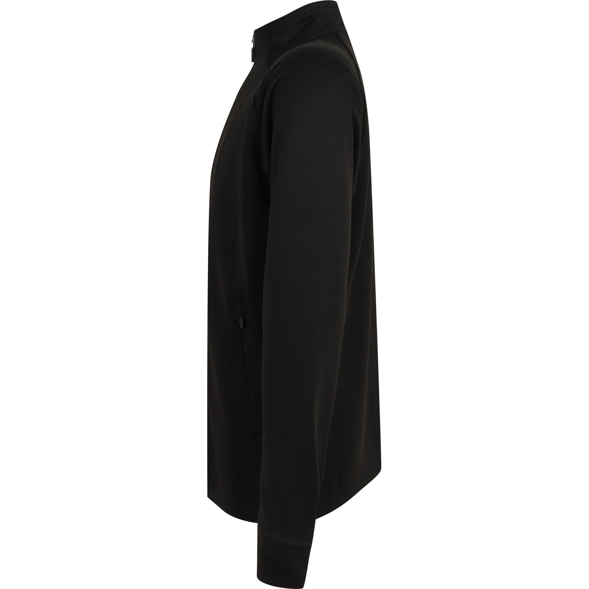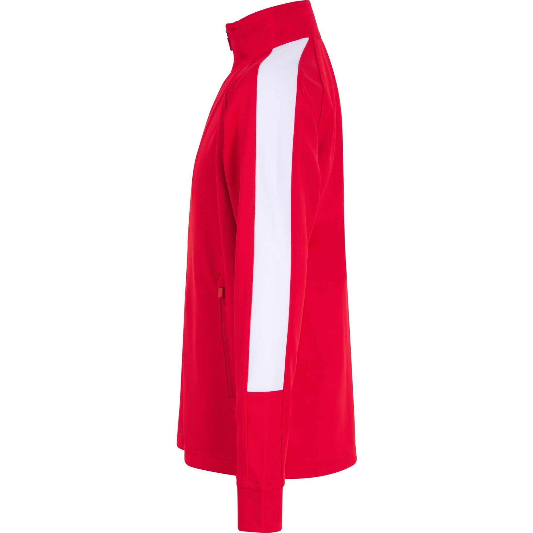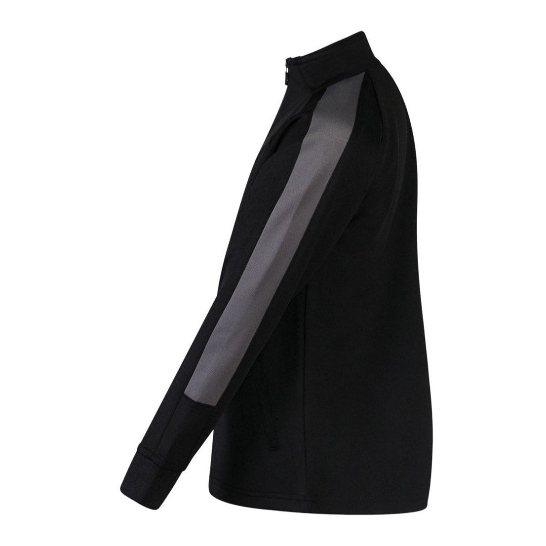 Knitted tracksuit top with contrast colour panels on outer sleeve. Contrast colour centre front zip. Zipped side pockets. Funnel neck and 1x1 ribbed cuffs. Semi-automatic lock zip sliders on all zips. BSCI certified.