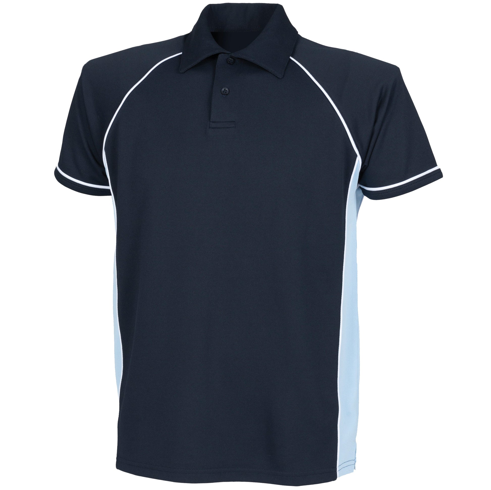 Coolplus® specially modified polyester fibres enable rapid absorption of sweat from skin surface. Contrast white piping along raglan seams and down front and back. 2 button placket, self-fabric collar. Oeko-Tex certified. SEDEX certified. WRAP certified.