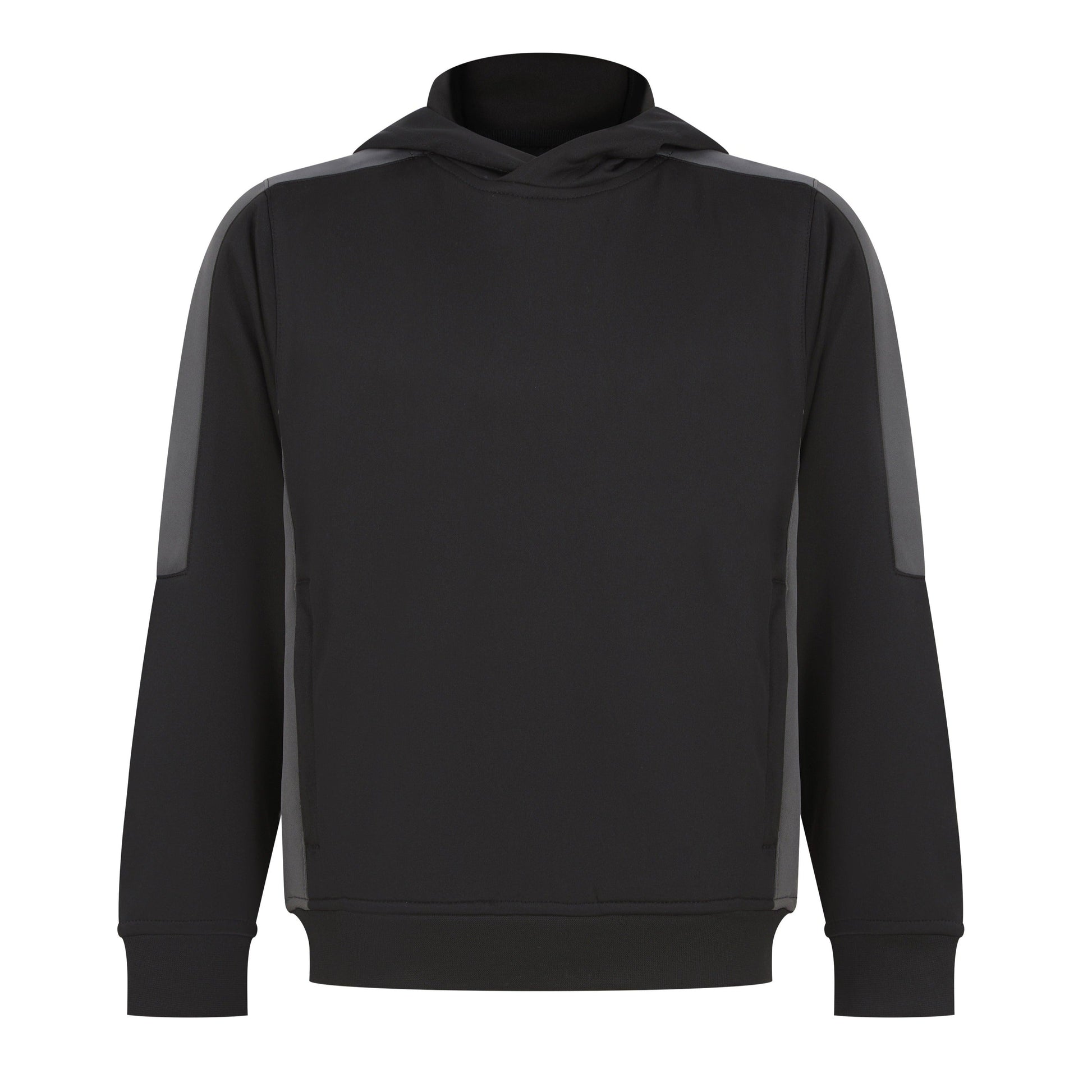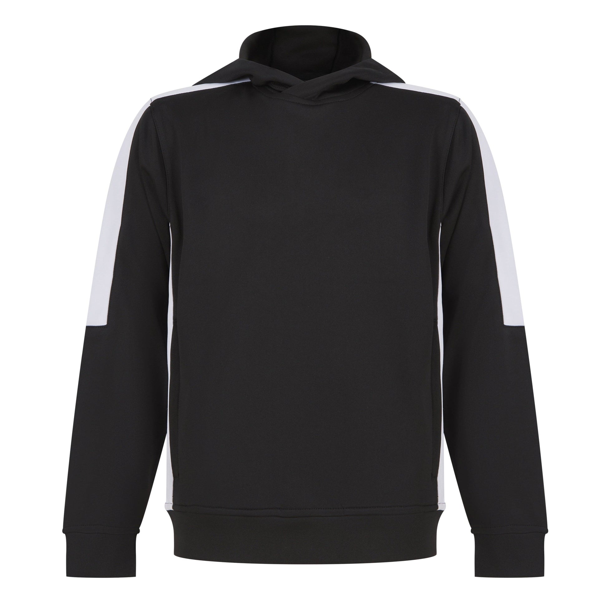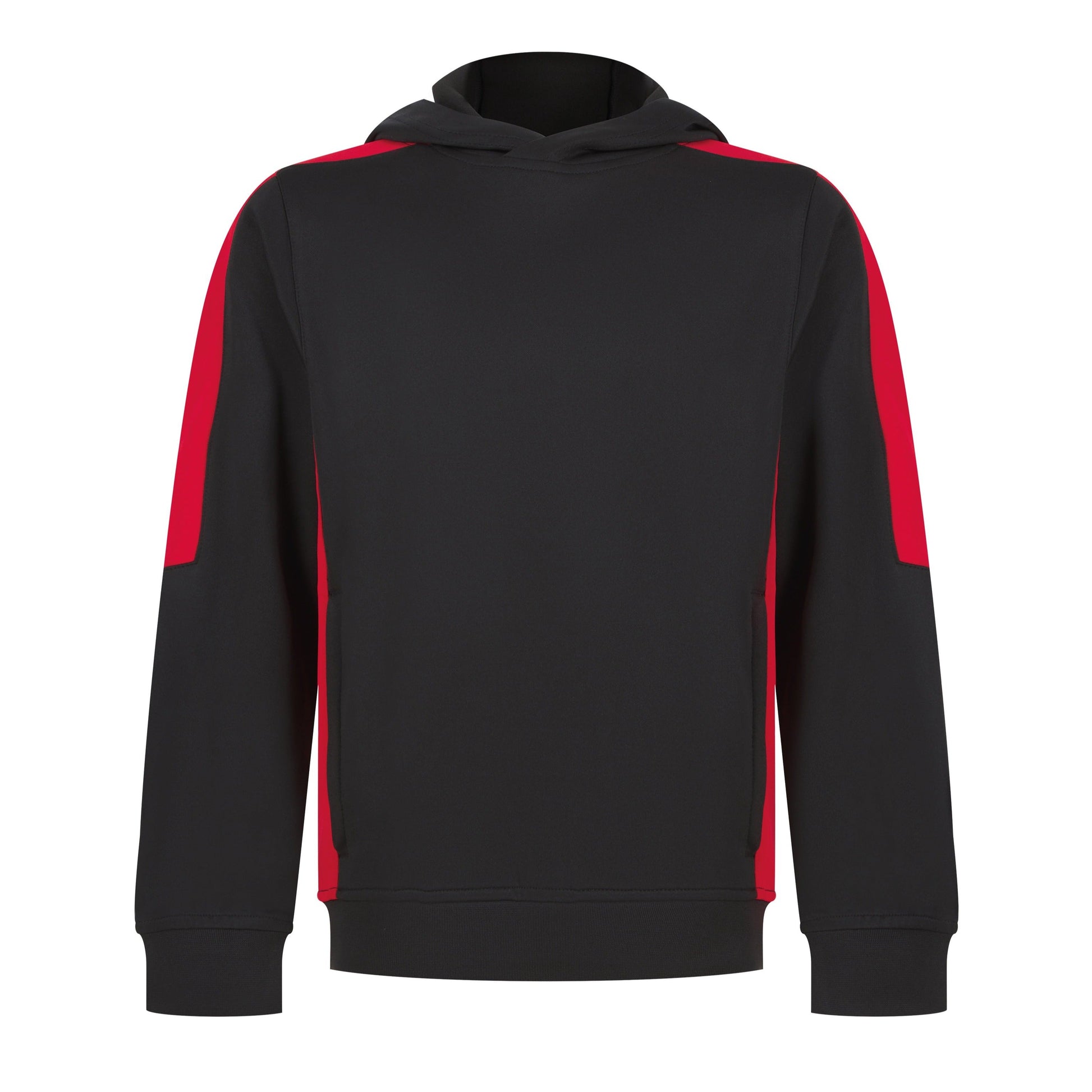 Unisex kids’ hoodie. Contrast sleeves and side panelling on contrast only. Ribbed cuffs and hem. Crossover hood neck at centre front. Zipped welt pocket in front panel side seam. Three-piece hood. Offered in contrast and solid colours. Tear-out label. Amfori BSCI certified.
