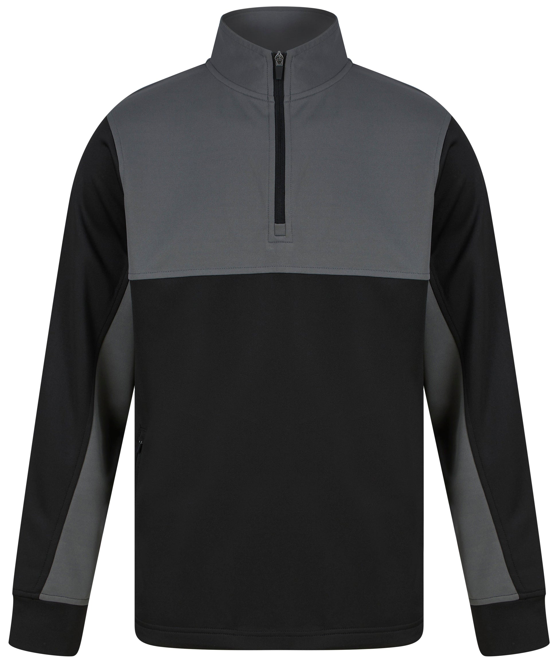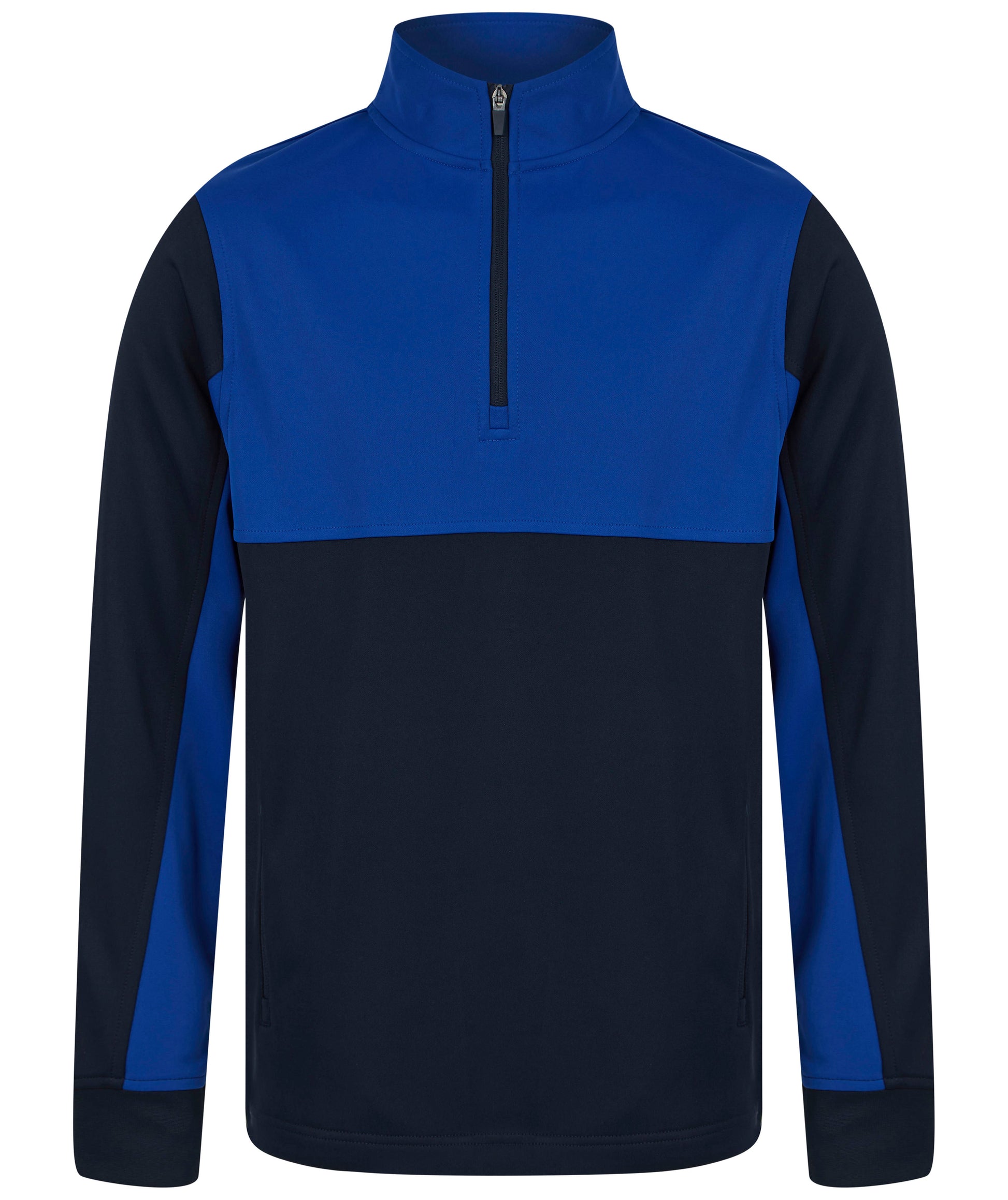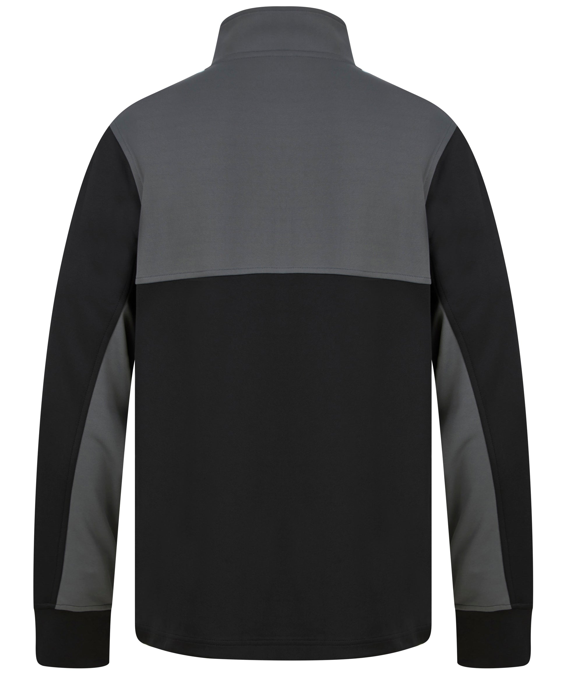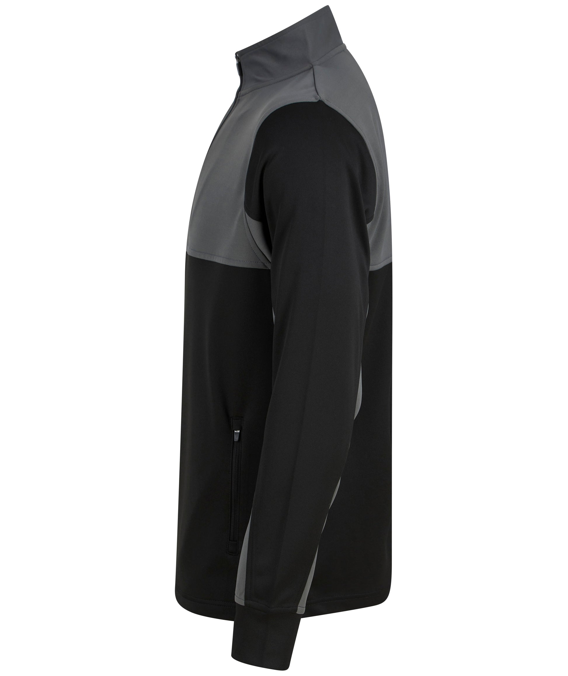 Contrast upper chest and underarm panels. Quarter zip. Side panels. Reverse nylon zips centre front and side pockets. 1x1 ribbed cuff sleeve. Semi-automatic zip pull and slider. . BSCI certified.