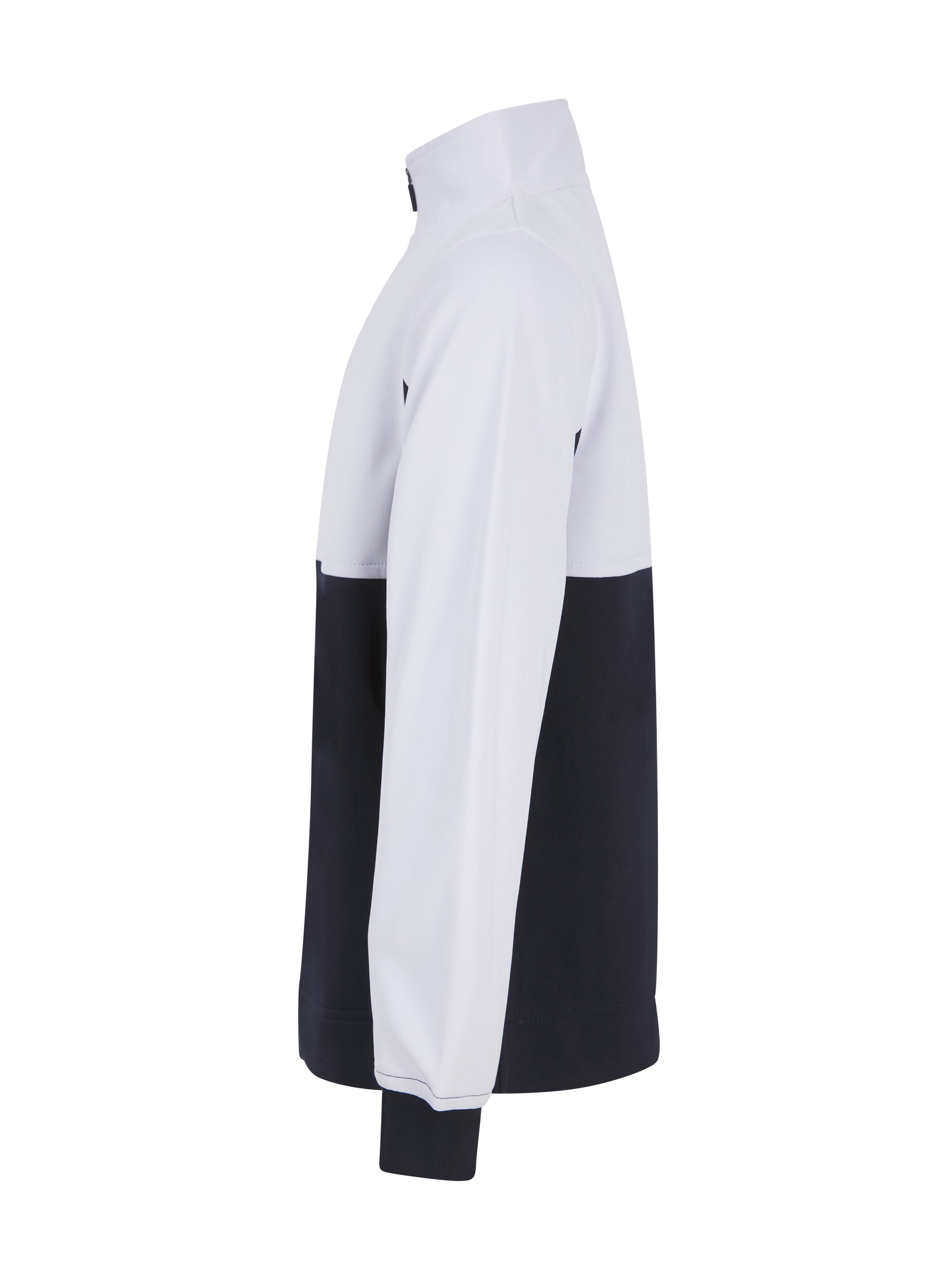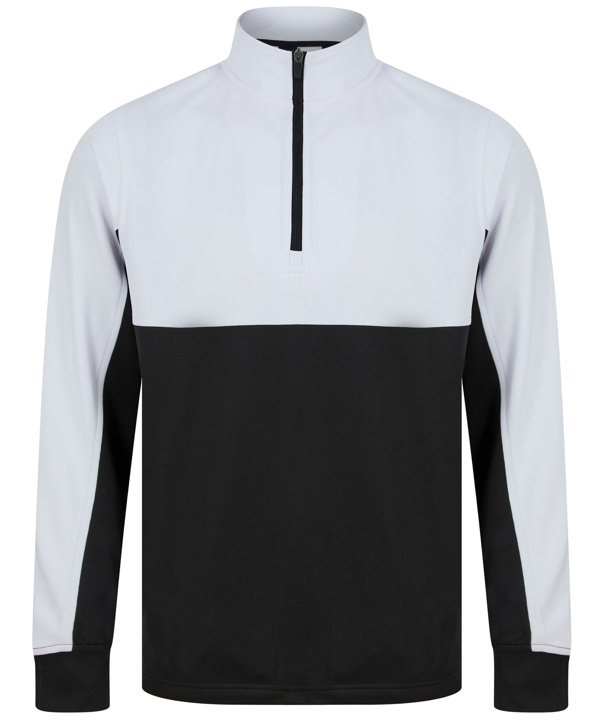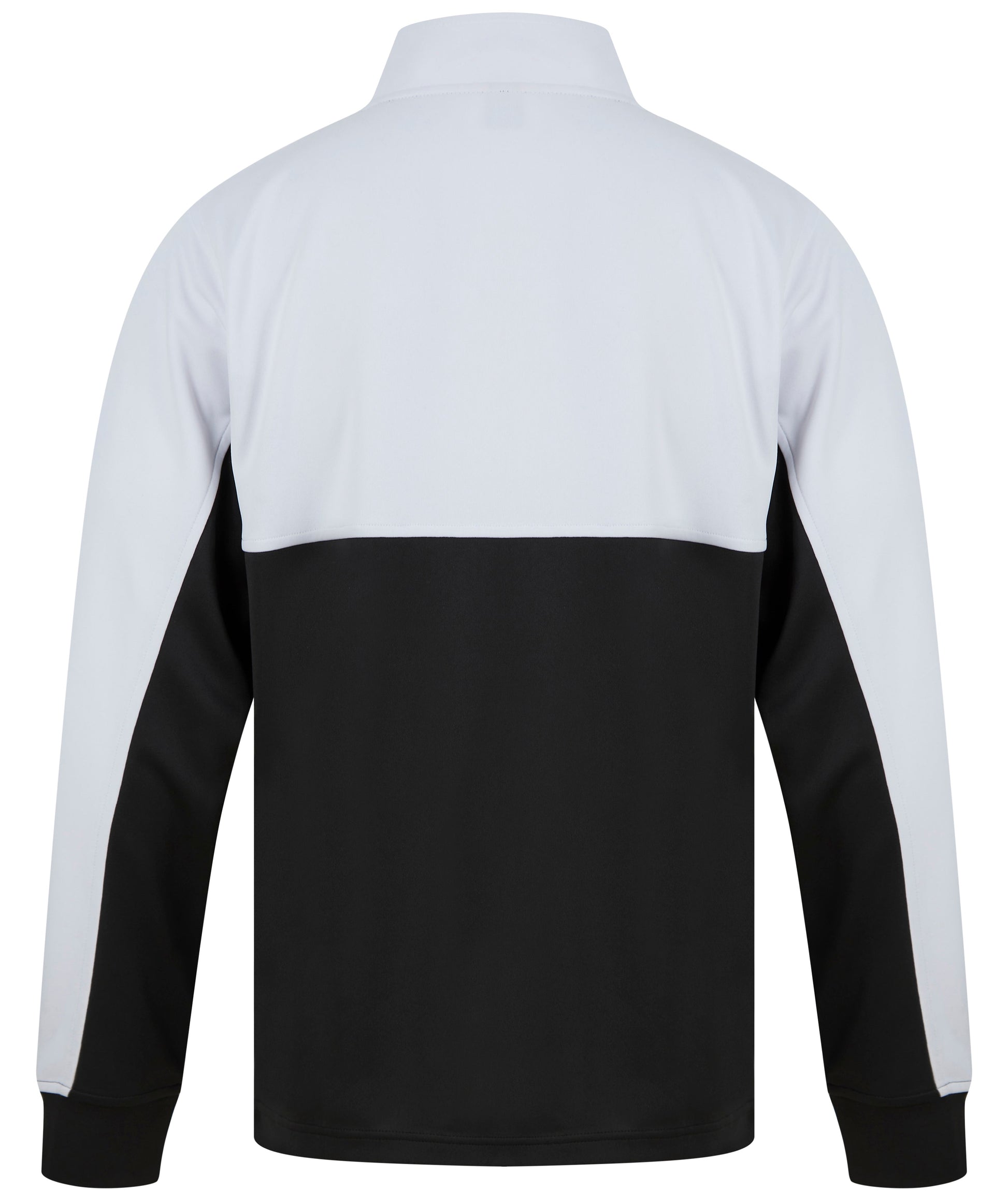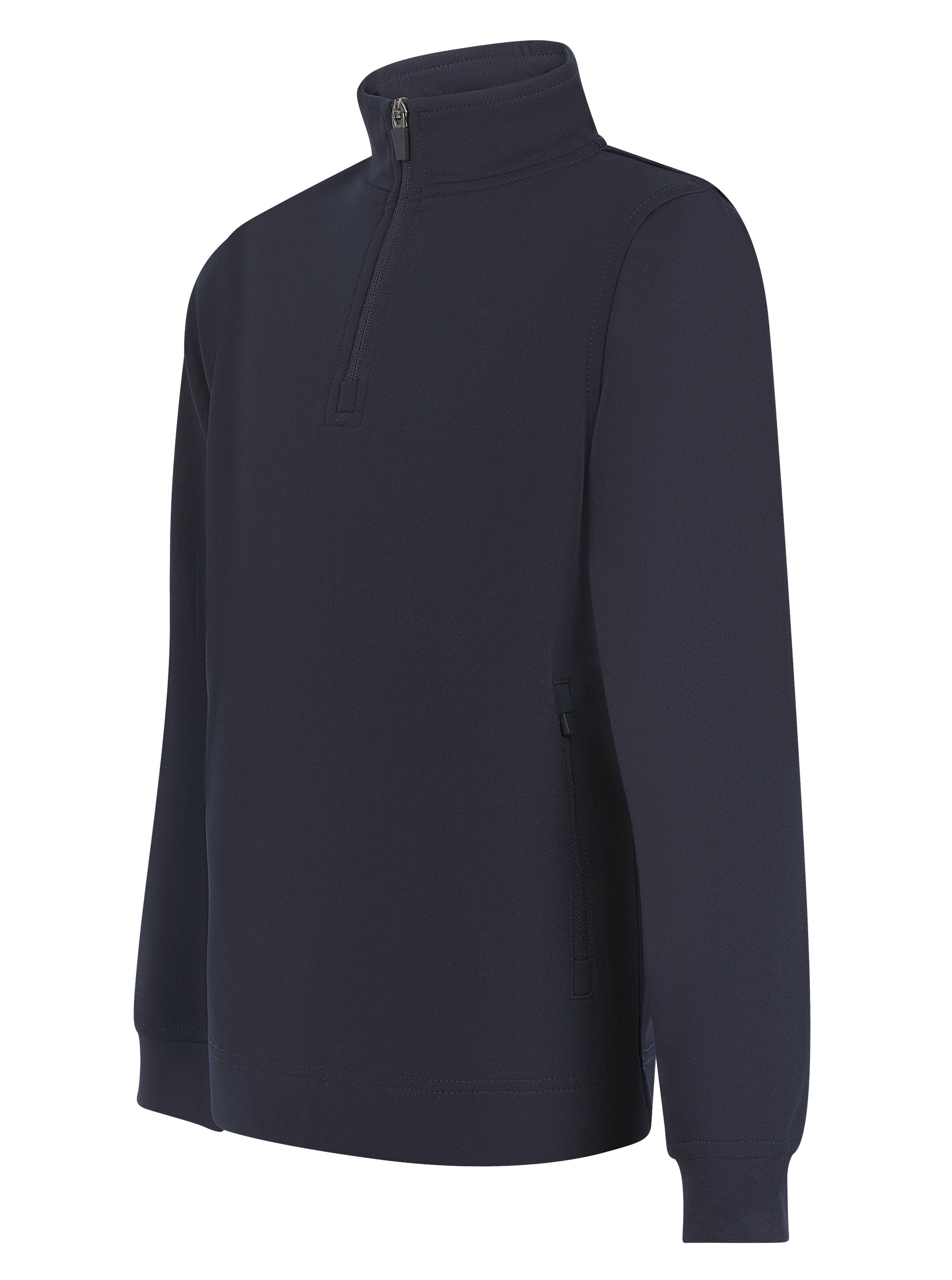Contrast upper chest and underarm panels. Quarter zip. Side panels. Reverse nylon zips centre front and side pockets. 1x1 ribbed cuff sleeve. Semi-automatic zip pull and slider. . BSCI certified.