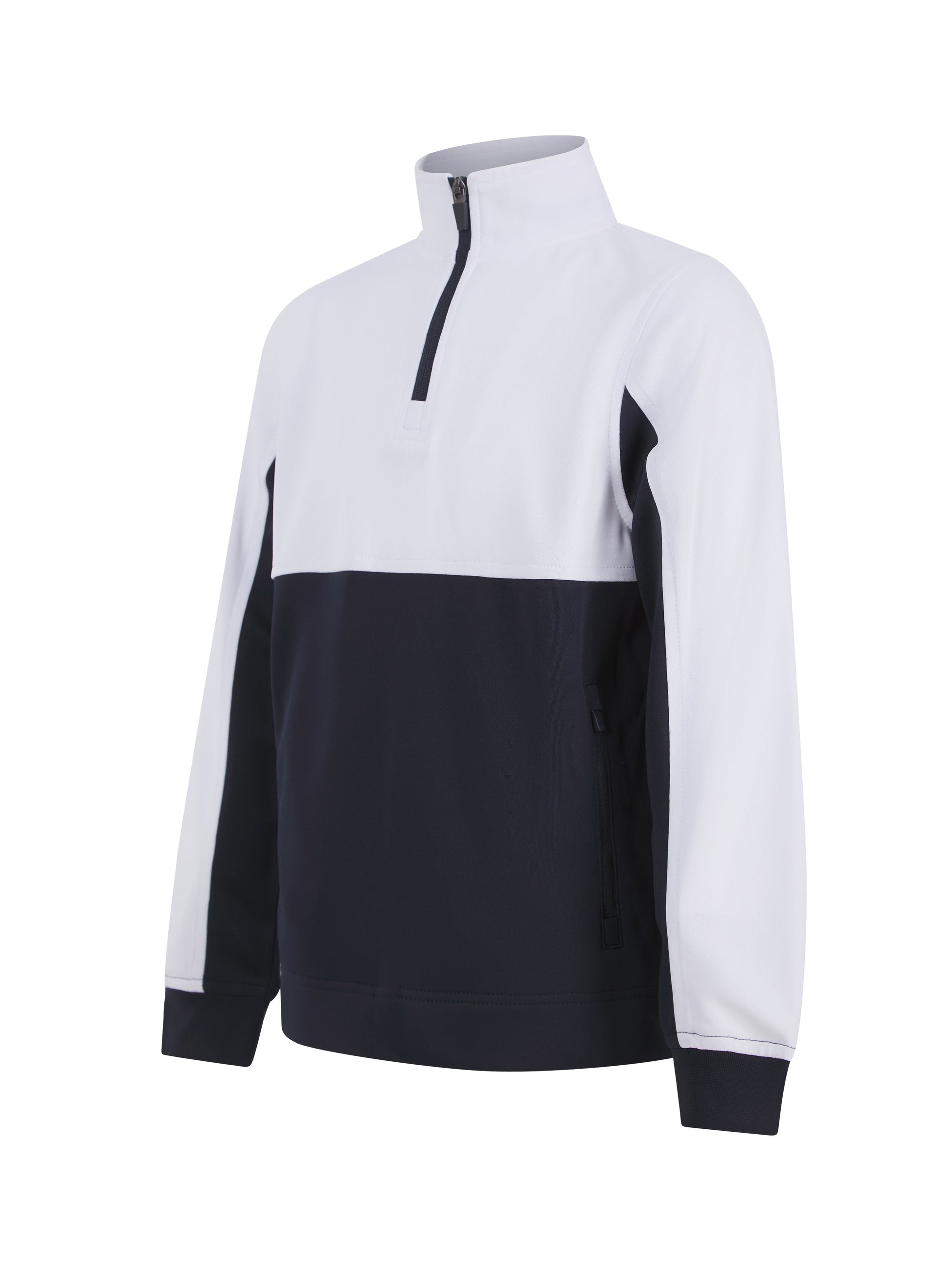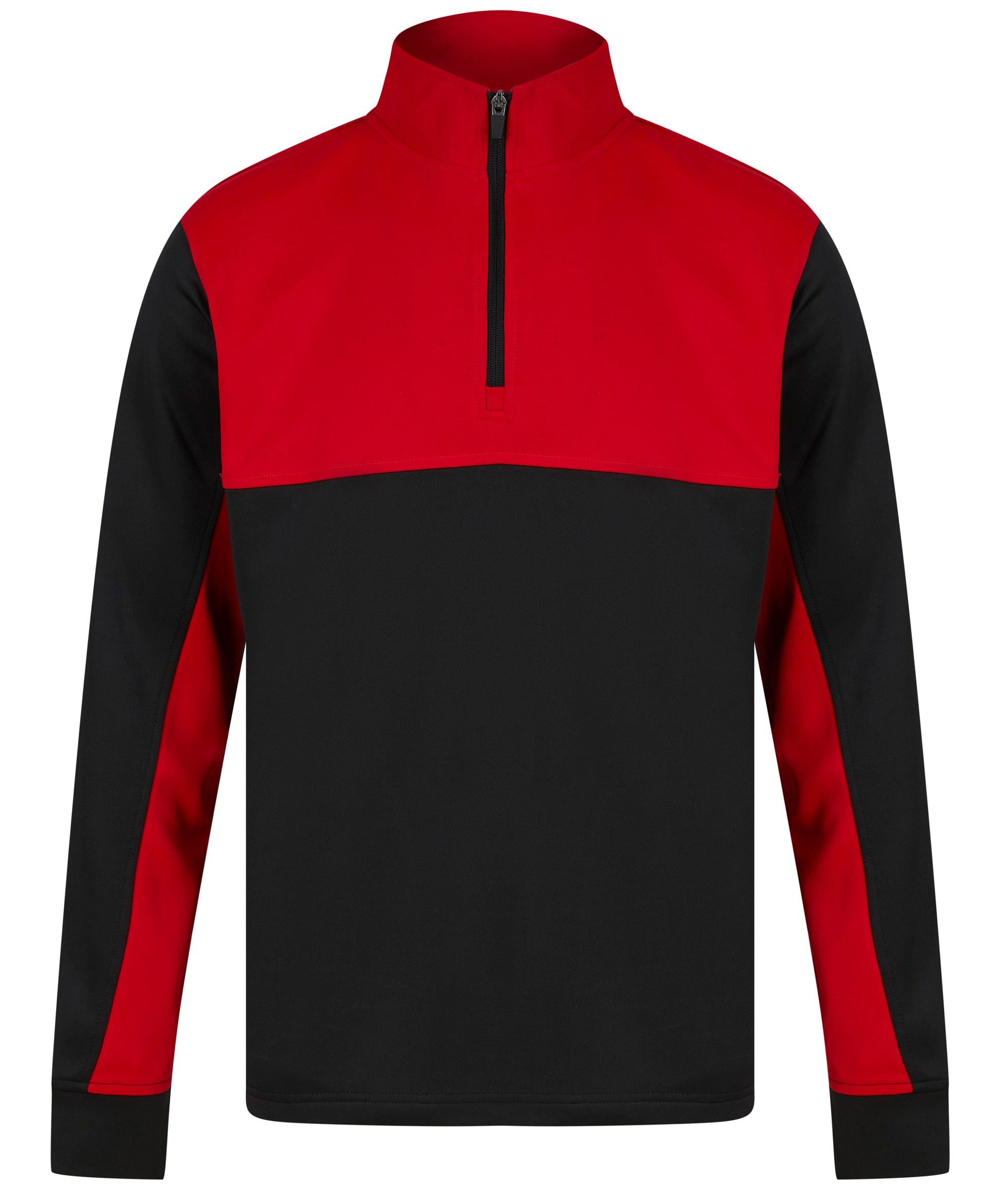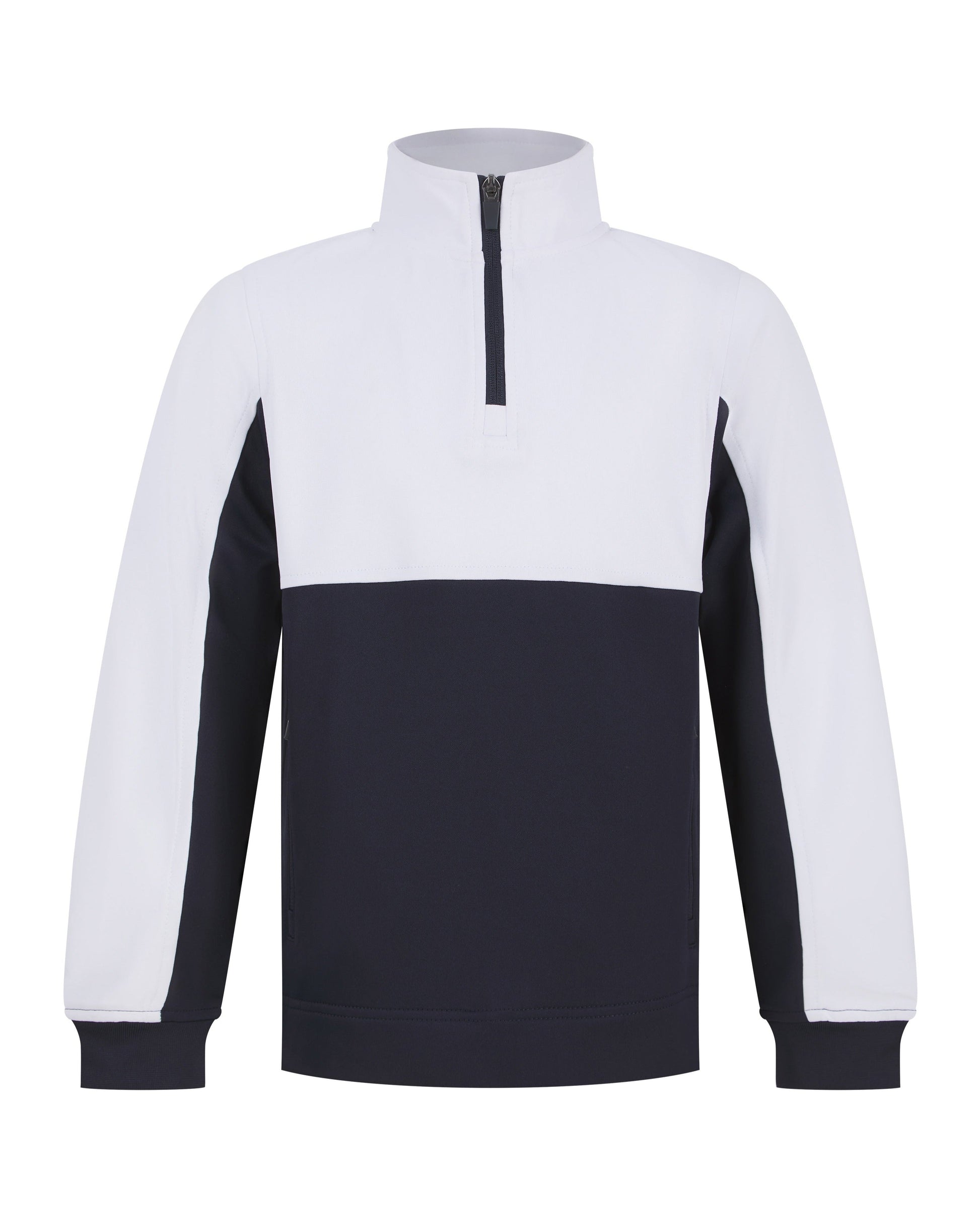 Contrast upper chest and underarm panels. Quarter zip. Side panels. Reverse nylon zips centre front and side pockets. 1x1 ribbed cuff sleeve. Semi-automatic zip pull and slider. . BSCI certified.