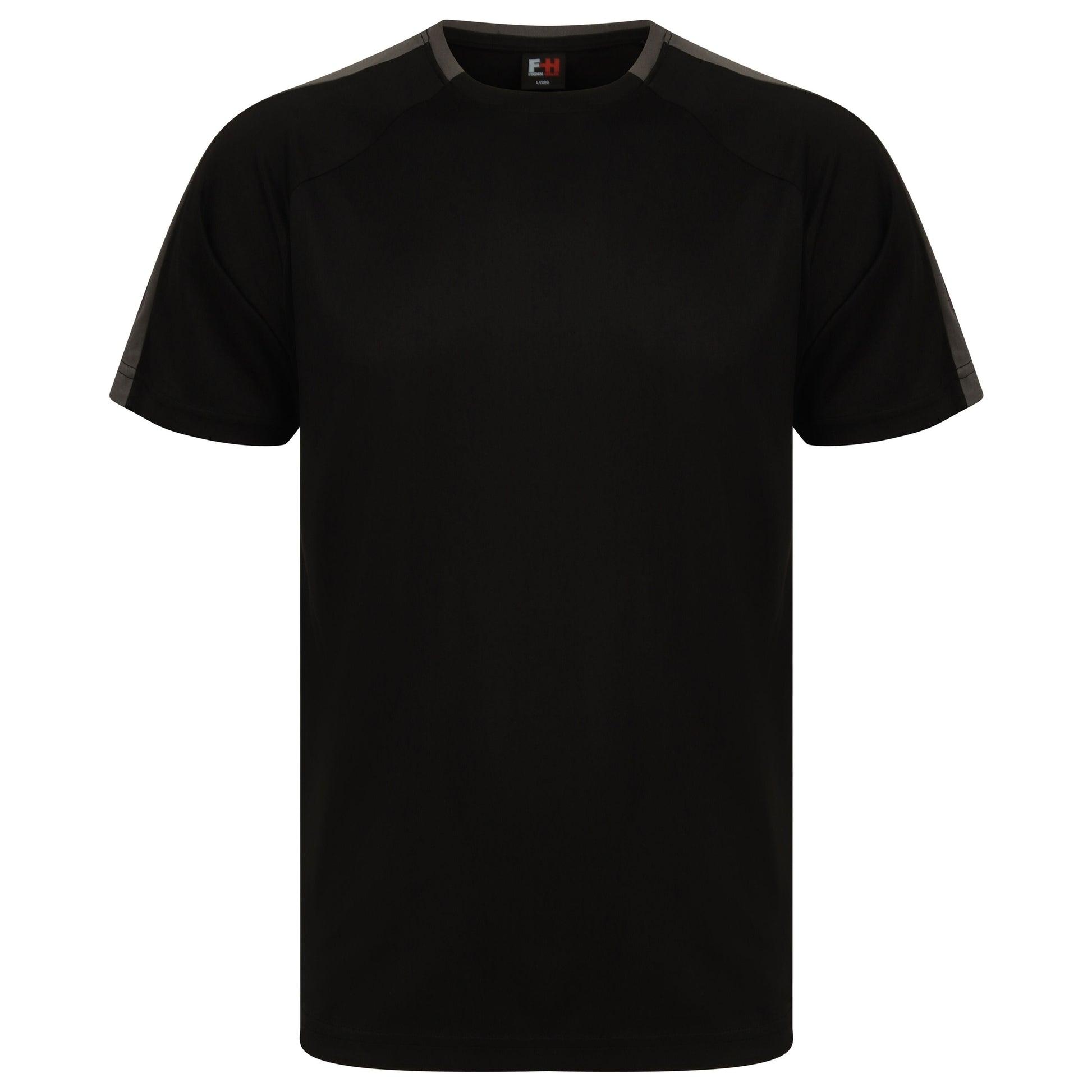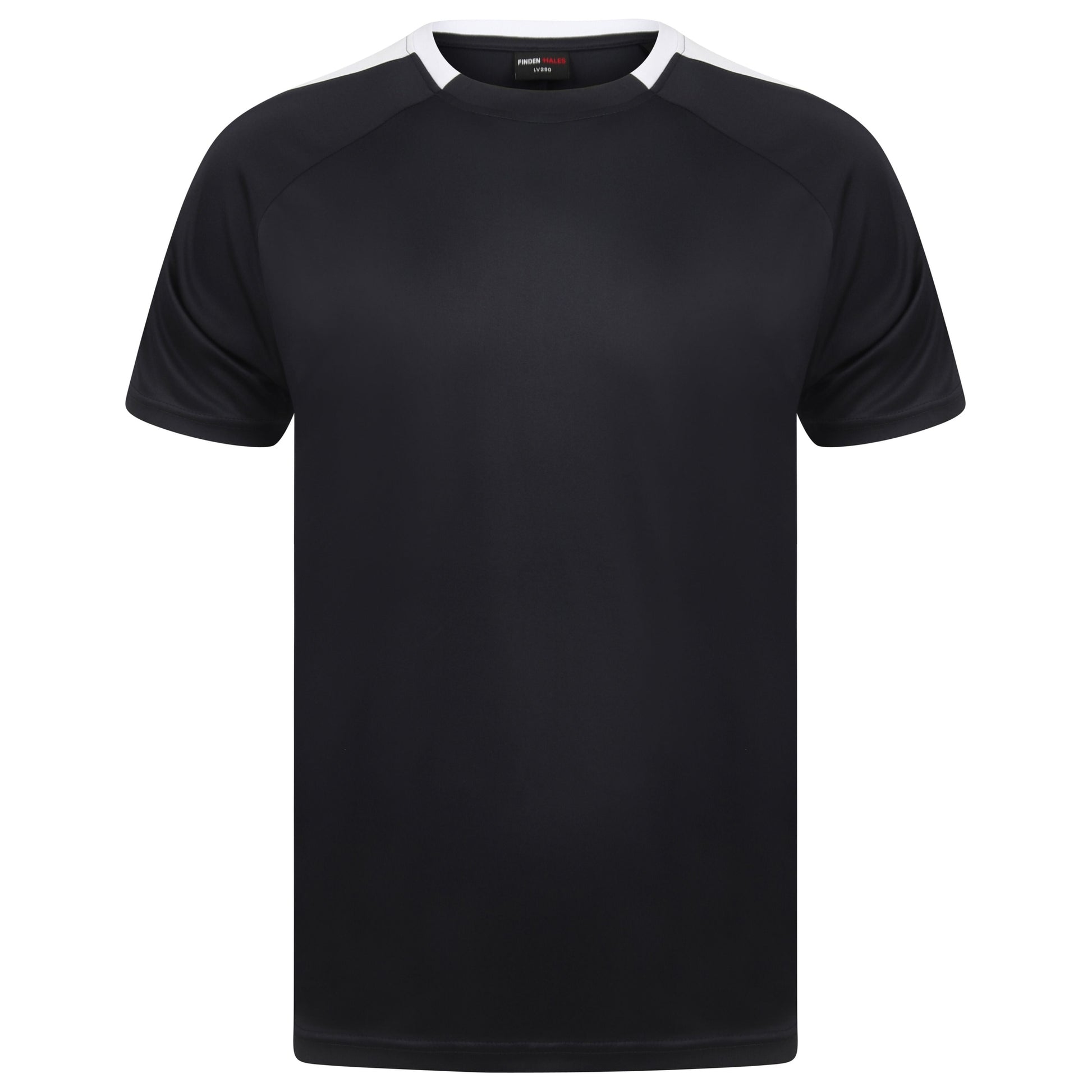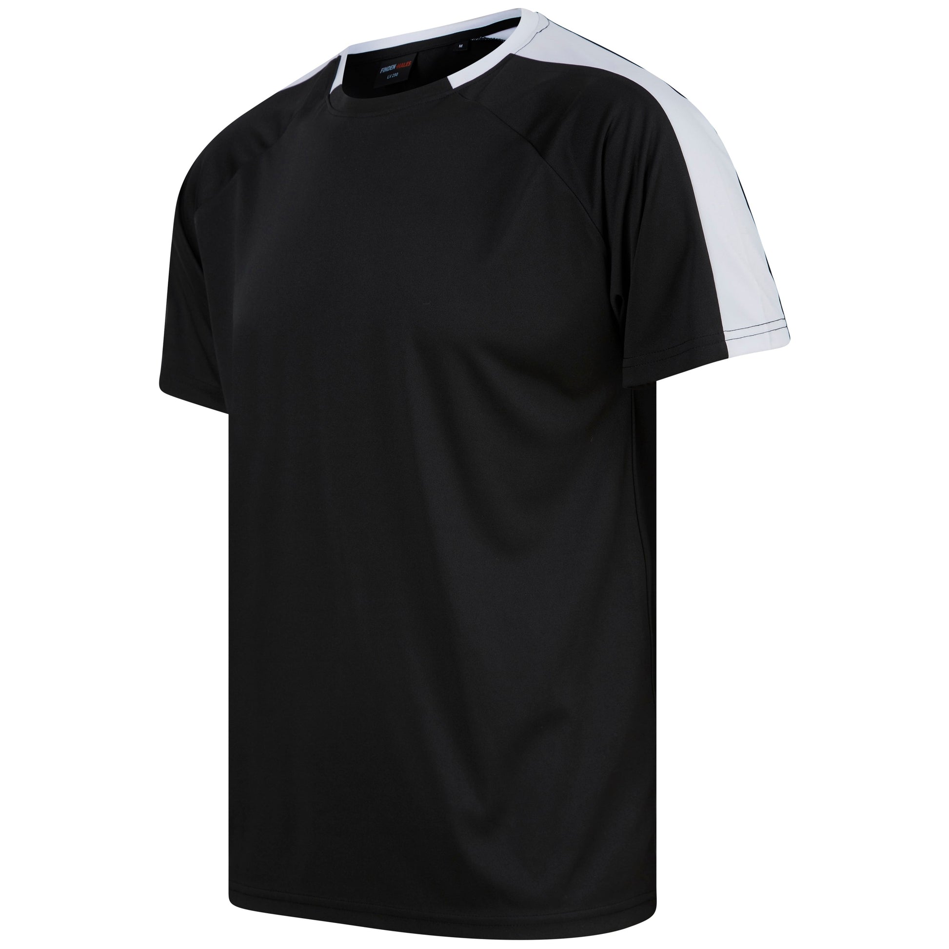 Unisex team t-shirt with self-fabric contrast colour sleeve panels. Sports fit. Wicking finish provides moisture management. Quick-dry and breathable. Self-fabric 2-piece collar. Raglan shoulder. Tear-out label for easy rebranding.