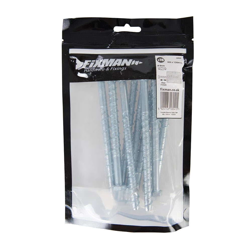 Non-expansion fixing bolt fixes directly to pre-drilled masonry, hollow block, brick and concrete. Quick and easy to use, this non-expansion fixing allows tight spacing and close-to-the-edge applications. Screws into a pre-drilled hole, cutting its own self-tapping thread without the need for a sleeve or plug. For the installation of racking, hand rails, barriers, storage systems, machinery and numerous other applications. Can be used indoors or out.