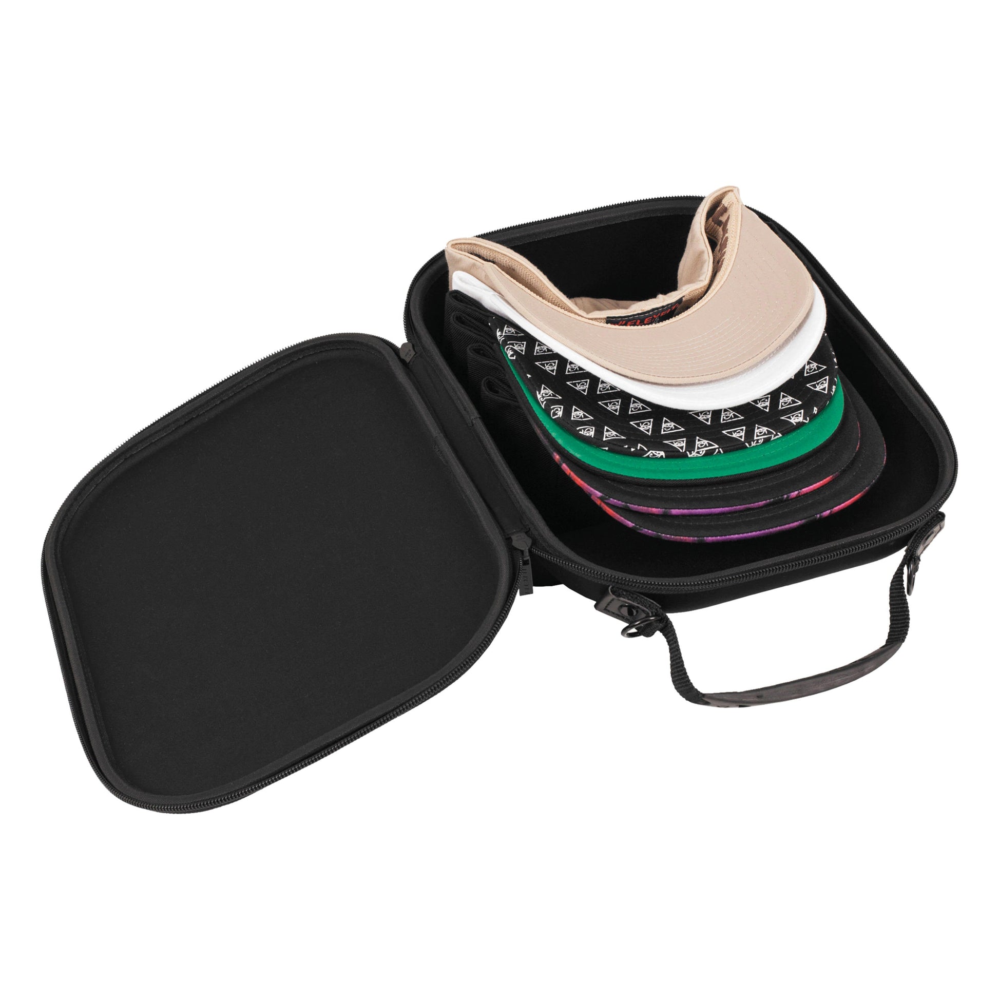 The Flexfit Cap Carrier gives cap wearers and collectors the possibility to transport, store and protect up to 6 caps. Made of crush proof EVA material, it is washable but not suitable for tumble drier. 6 eyelets for ventilation ensure a good air circulation. The Flexfit Cap Carrier can be opened easily due to the double zip closure. Further it features two metal rings for a convenient attachment to a suitcase or backpack. The rubber-coated handles provide a comfortable grip for the transport. The fine logo branding gives a cool look.