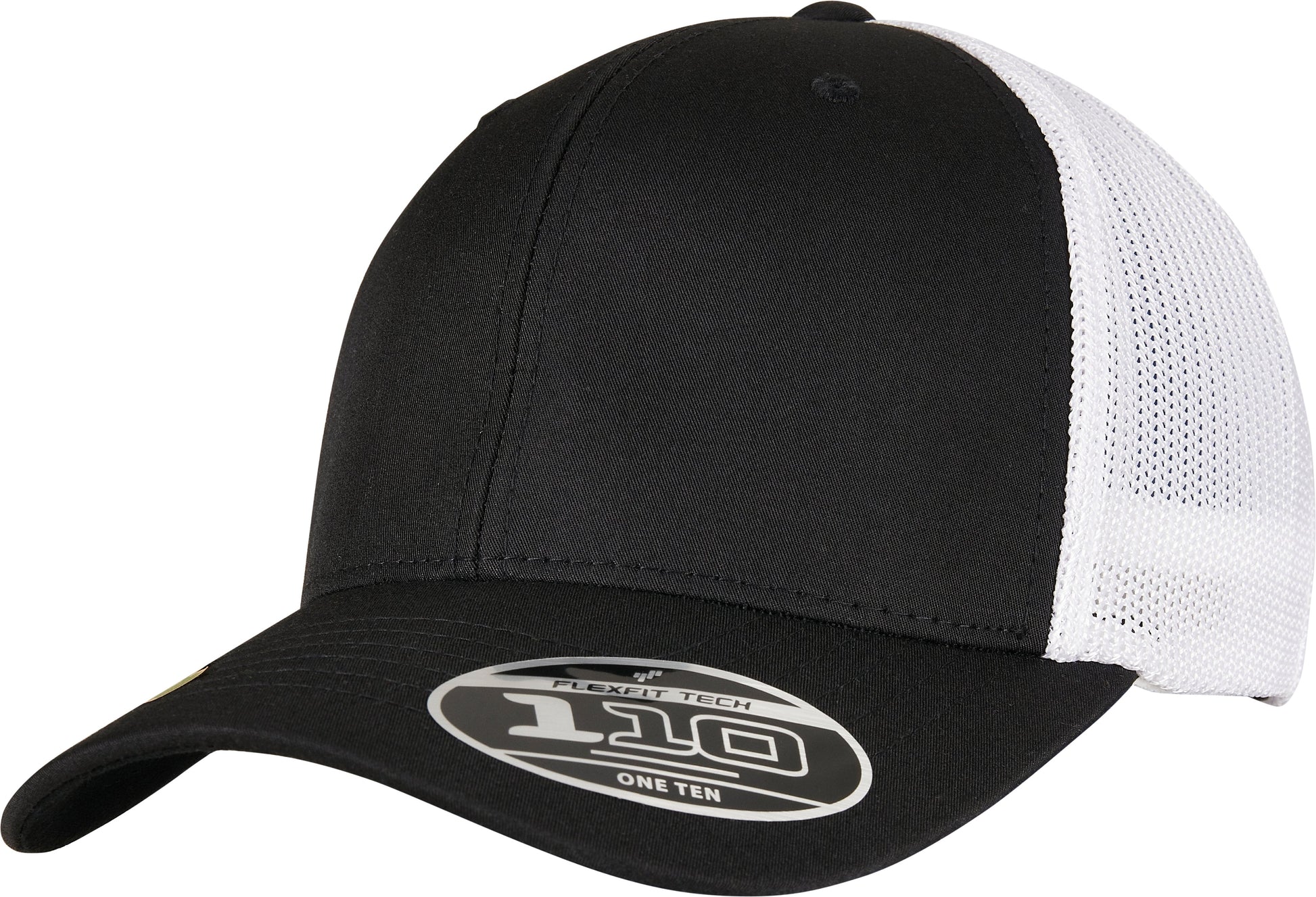 Fly look and environmentally friendly material: the two-tone trucker cap brings together what belongs together. Both, transparent mesh on the back and opaque front of the cap, are made of recycled polyester and thus combine a trendy look with a clear conscience. For providing a classy look the cap comes in black and white. Naturally, it also features a pre-bent, eight-fold stitched visor. Excellent wearing comfort comes through the consistent use of two technologies: integrated Flexfit ribbon and a colour-matched snapback closure for individual size adjustment.