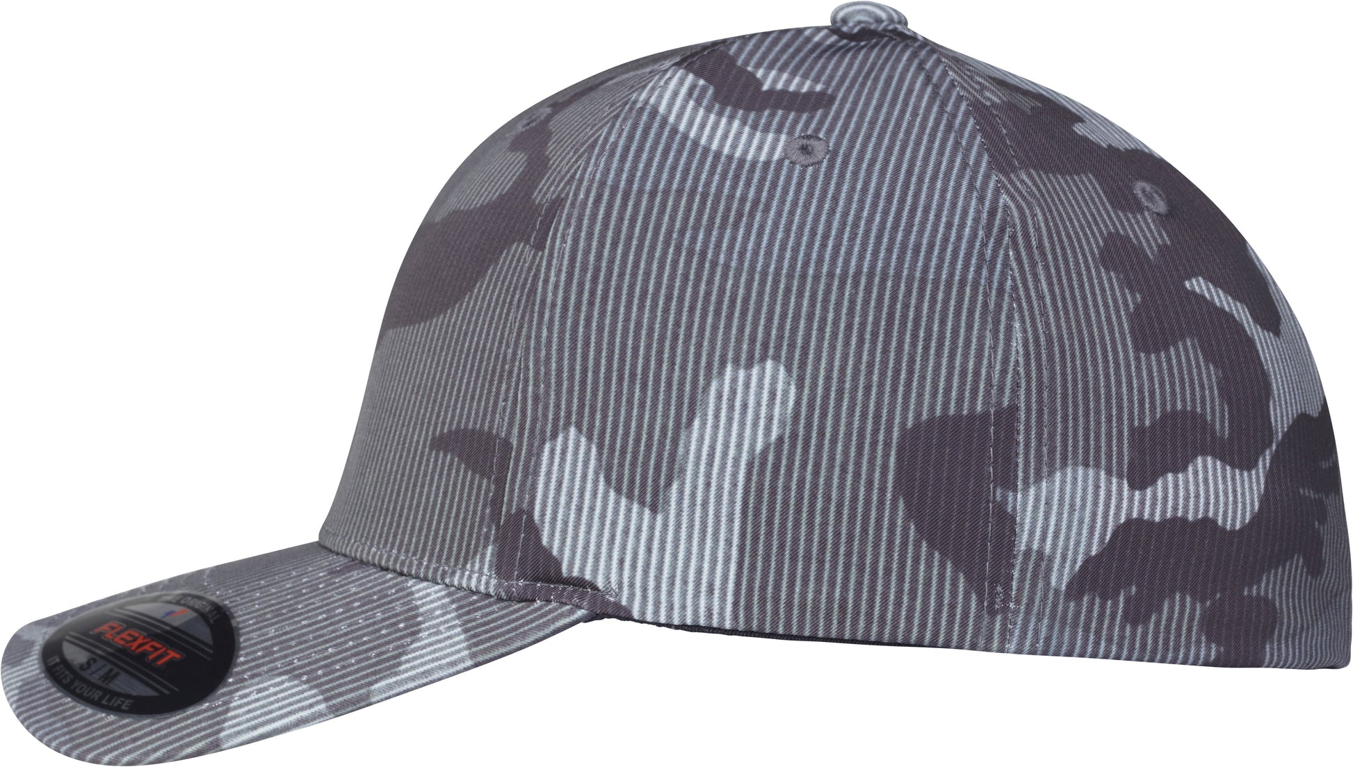 Flexfit camo stripe cap. Trendy camo print and subtle striped design. Slightly curved brim. Patented Flexfit technology. BSCI certified. WRAP certified.