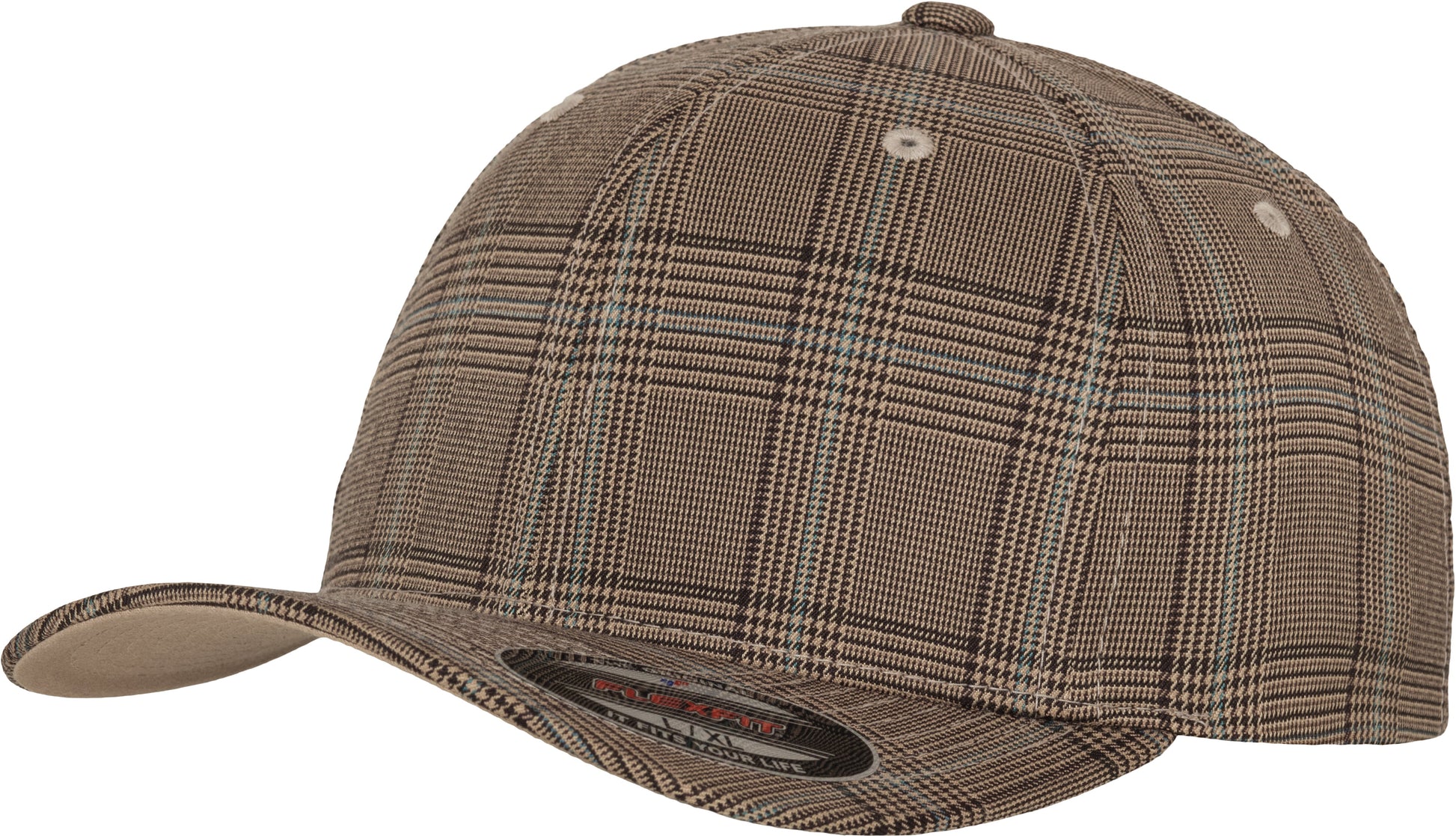 Cap with two faces. Traditional glen check pattern. Typical casual Flexfit style. Reinforced front. BSCI certified. WRAP certified.