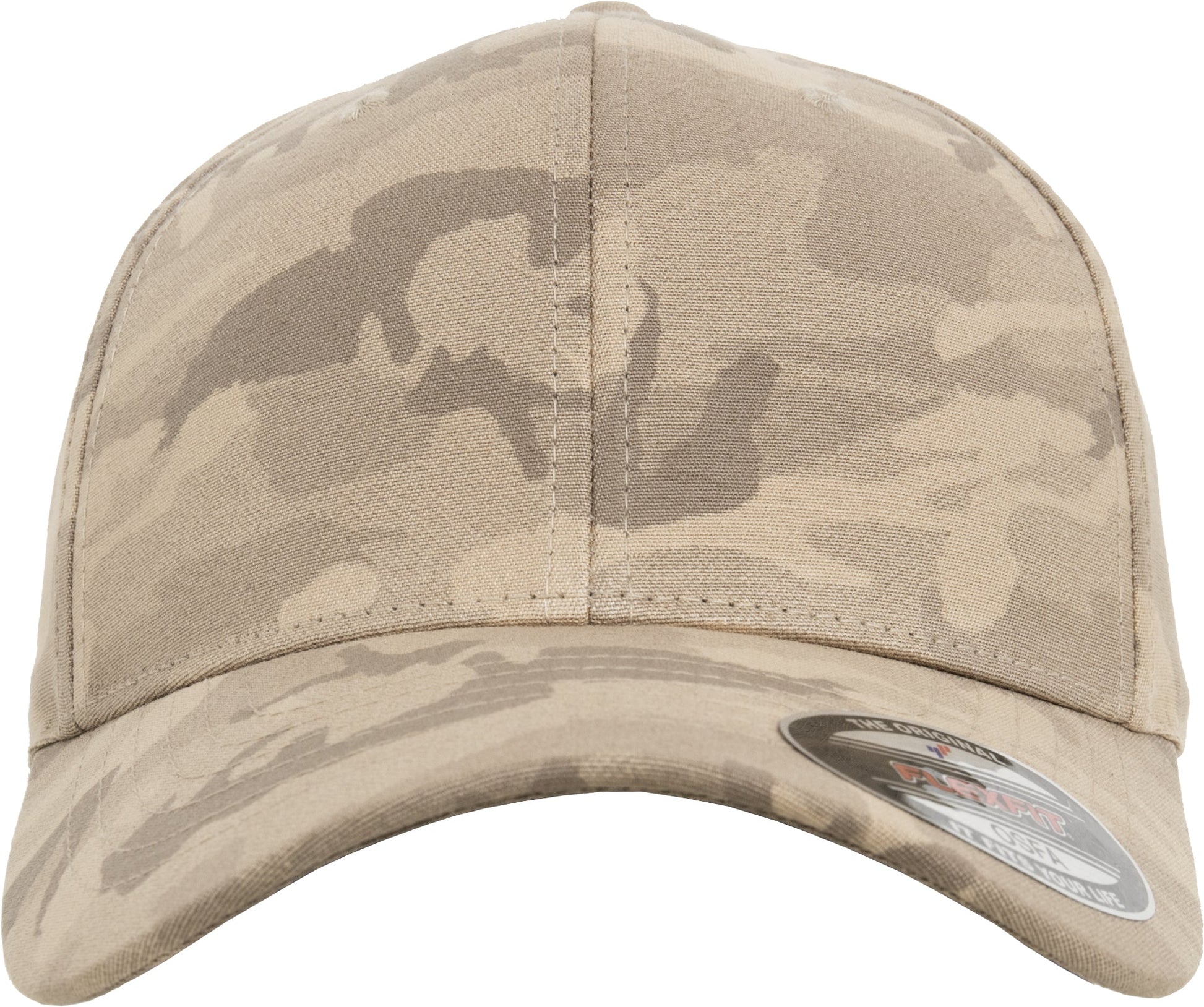 Flexfit light camo. Proven Flexfit shape. Pre-bent visor with decorative stitching. Delicate pastel camo pattern. BSCI certified. WRAP certified.