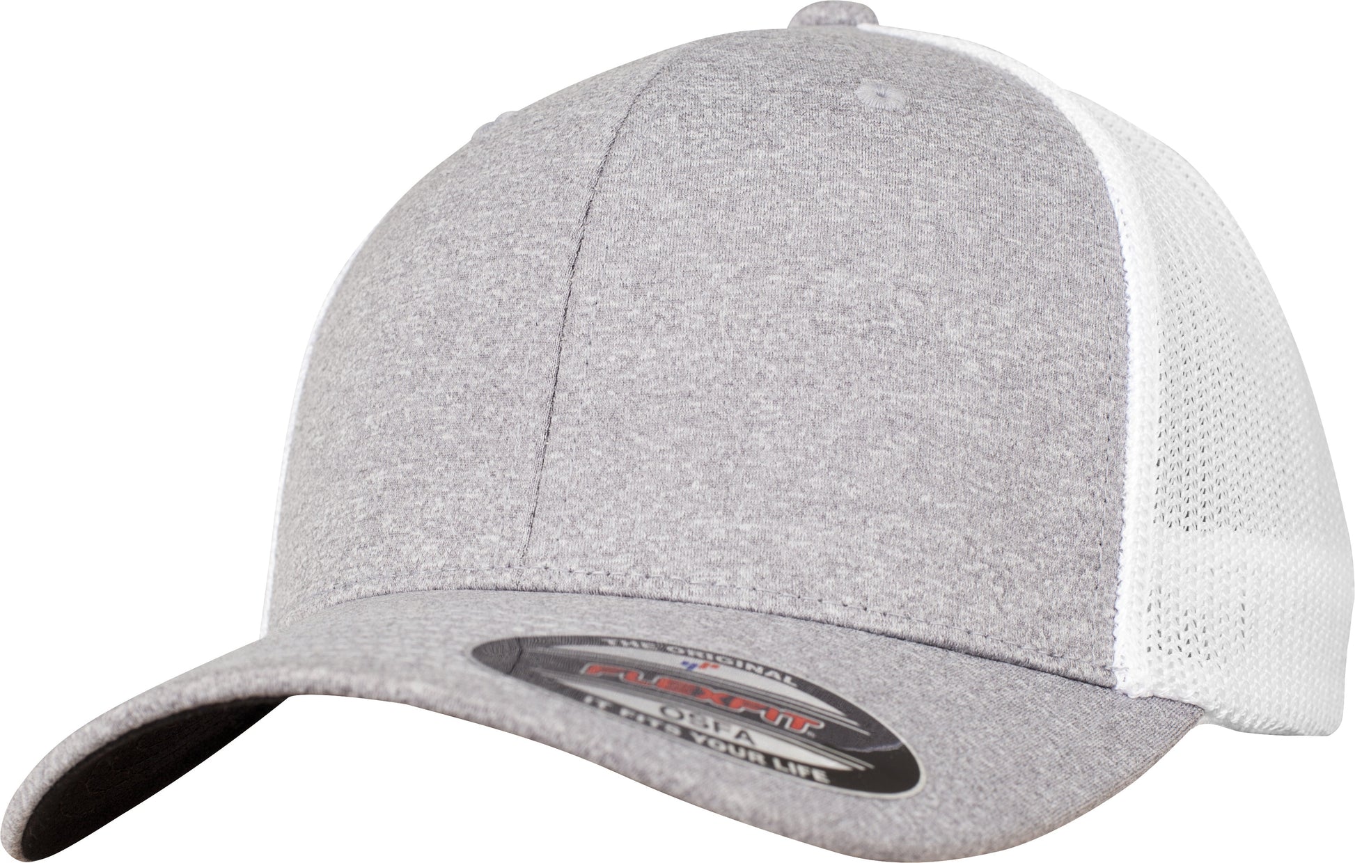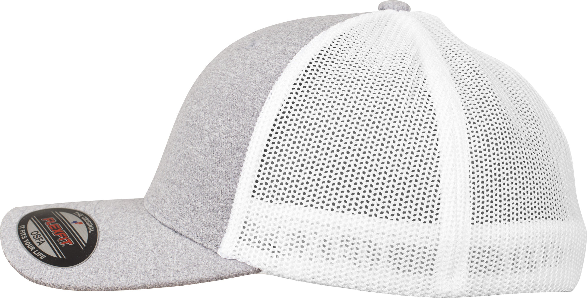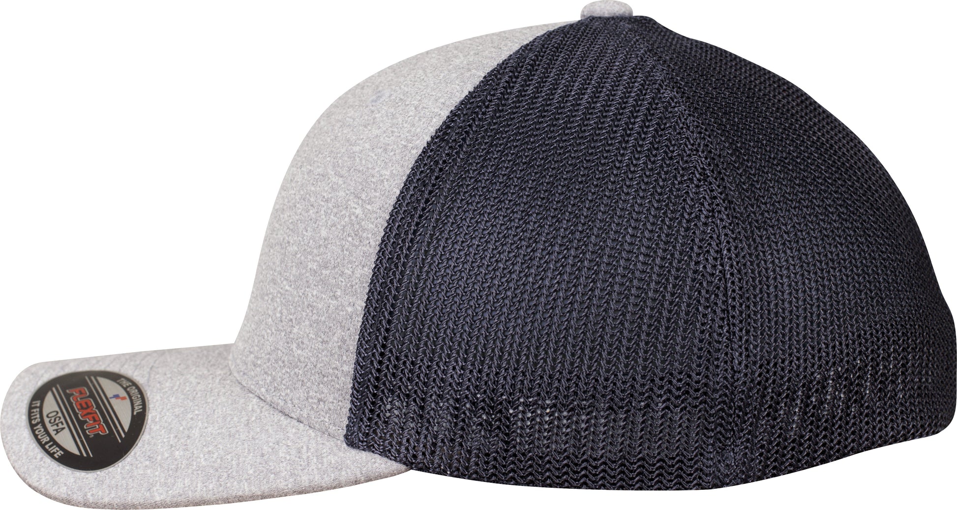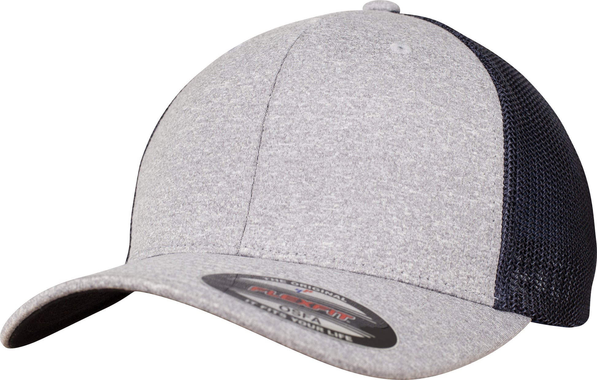 Patented Flexfit melange mesh. Comfort fit. Front in trendy colours. Hard buckram. Black undervisor. BSCI certified. WRAP certified.