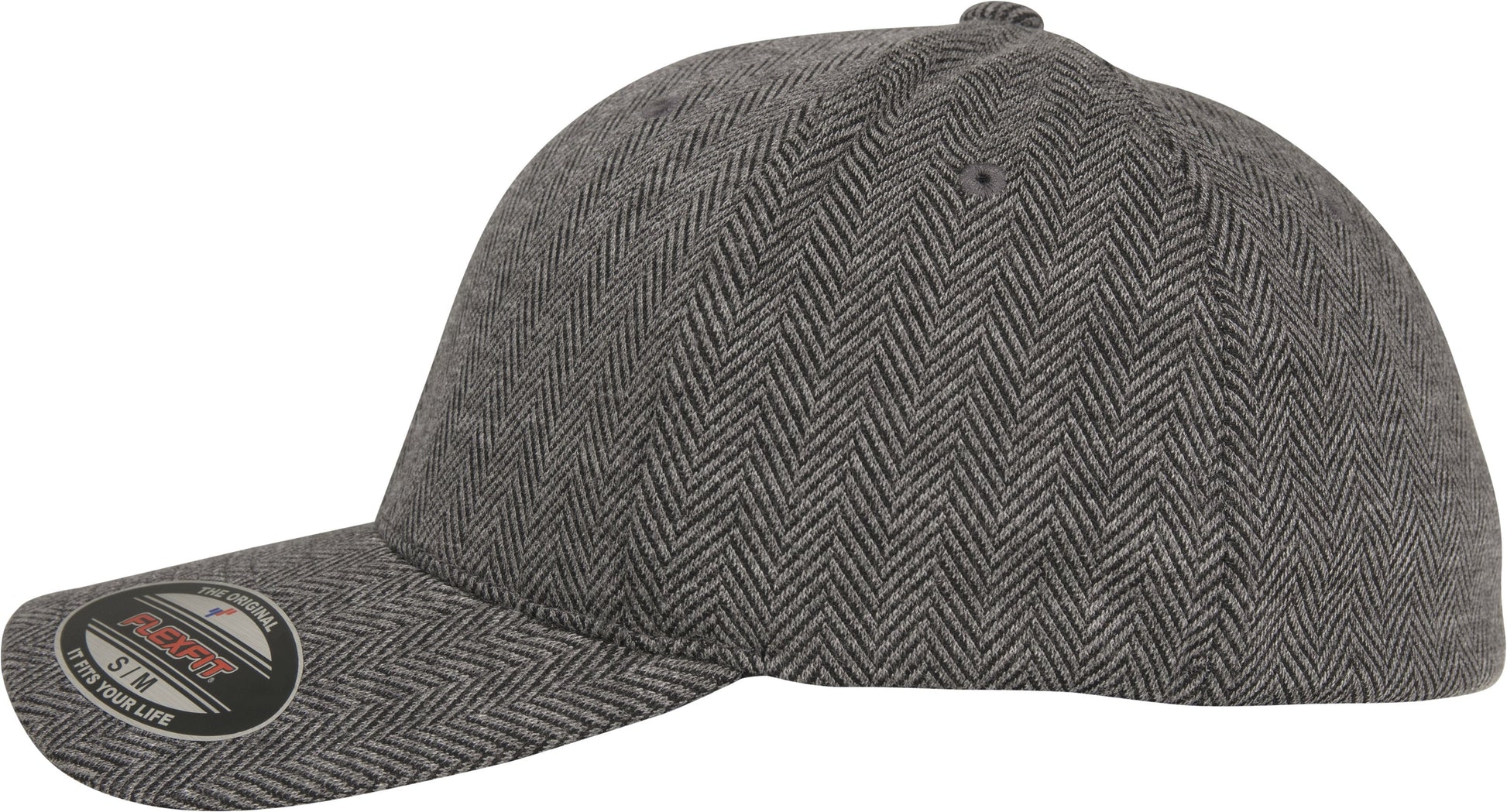 Herringbone melange Flexfit. Sporty shape. Patented Flexfit technology. Classic herringbone pattern. Tweed look. Cool and dry function. BSCI certified. WRAP certified.