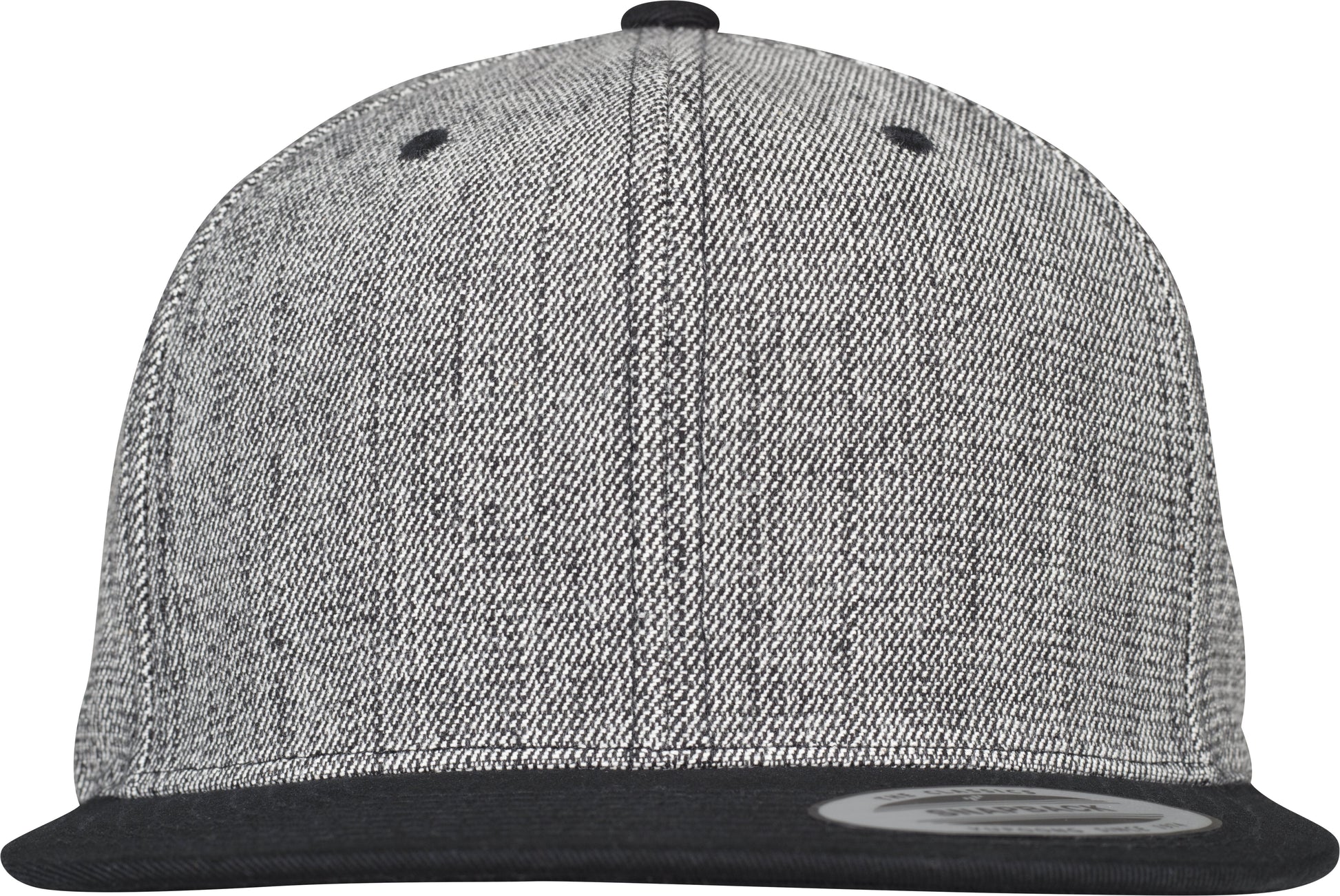 Melange solid snapback. Classy cotton twill. Fine melange look. Flat brim in black. Typical snap closure. BSCI certified. WRAP certified.