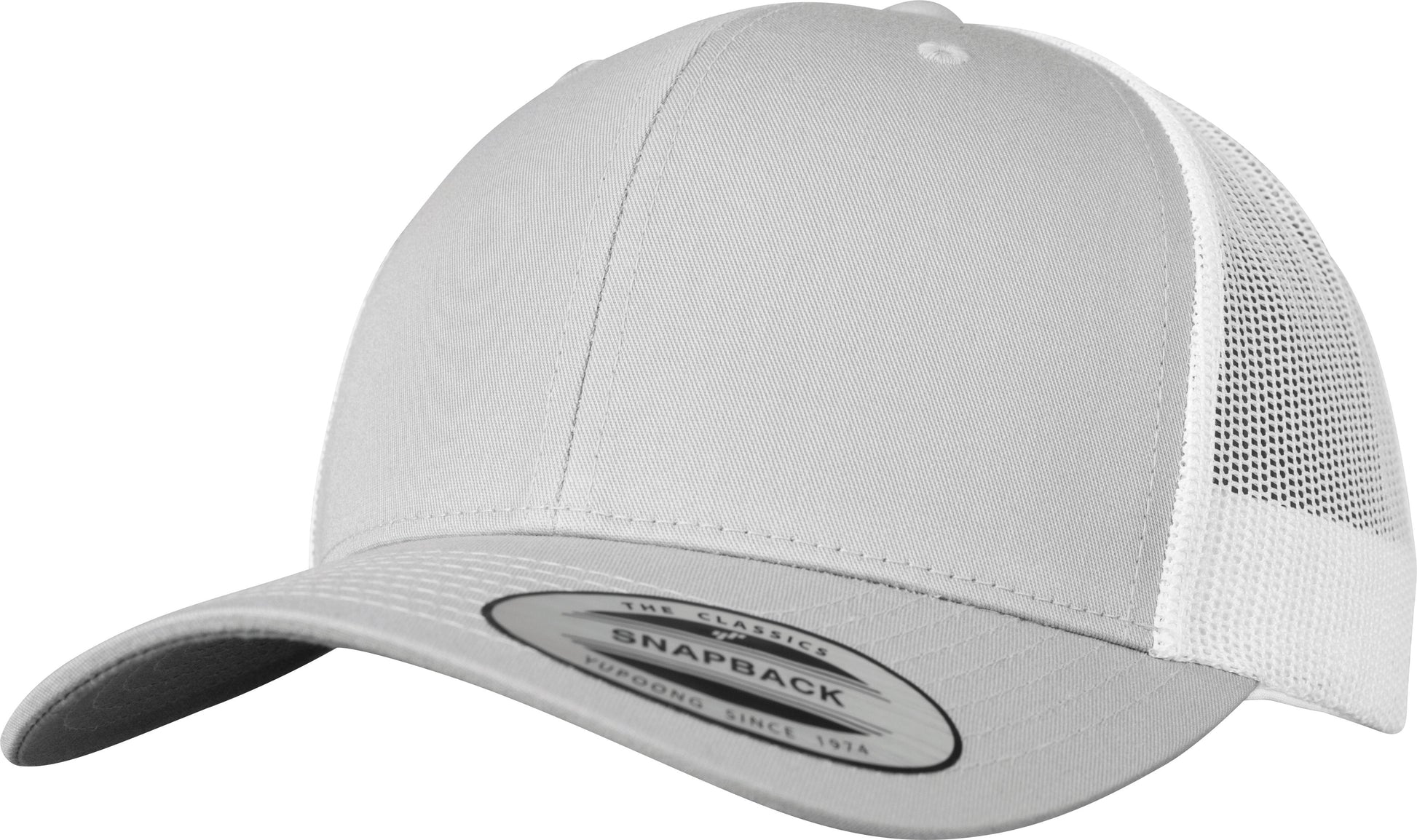 Two-coloured, mesh back and a snap closure – that definitely sounds like a trucker cap. However, the retro trucker 2-tone offers a twist with its lower profile and structured canvas front instead of the typical foam. The centre seam on the front rounds off the casual look.
